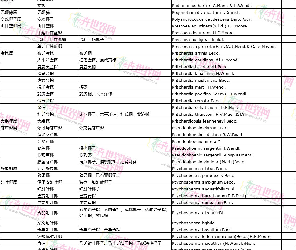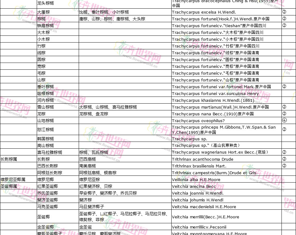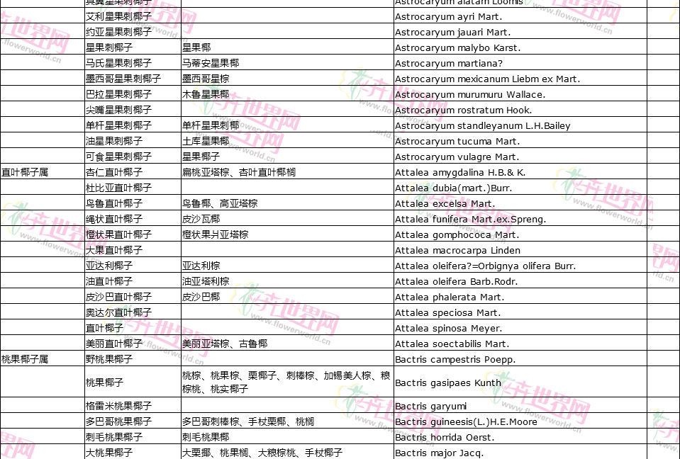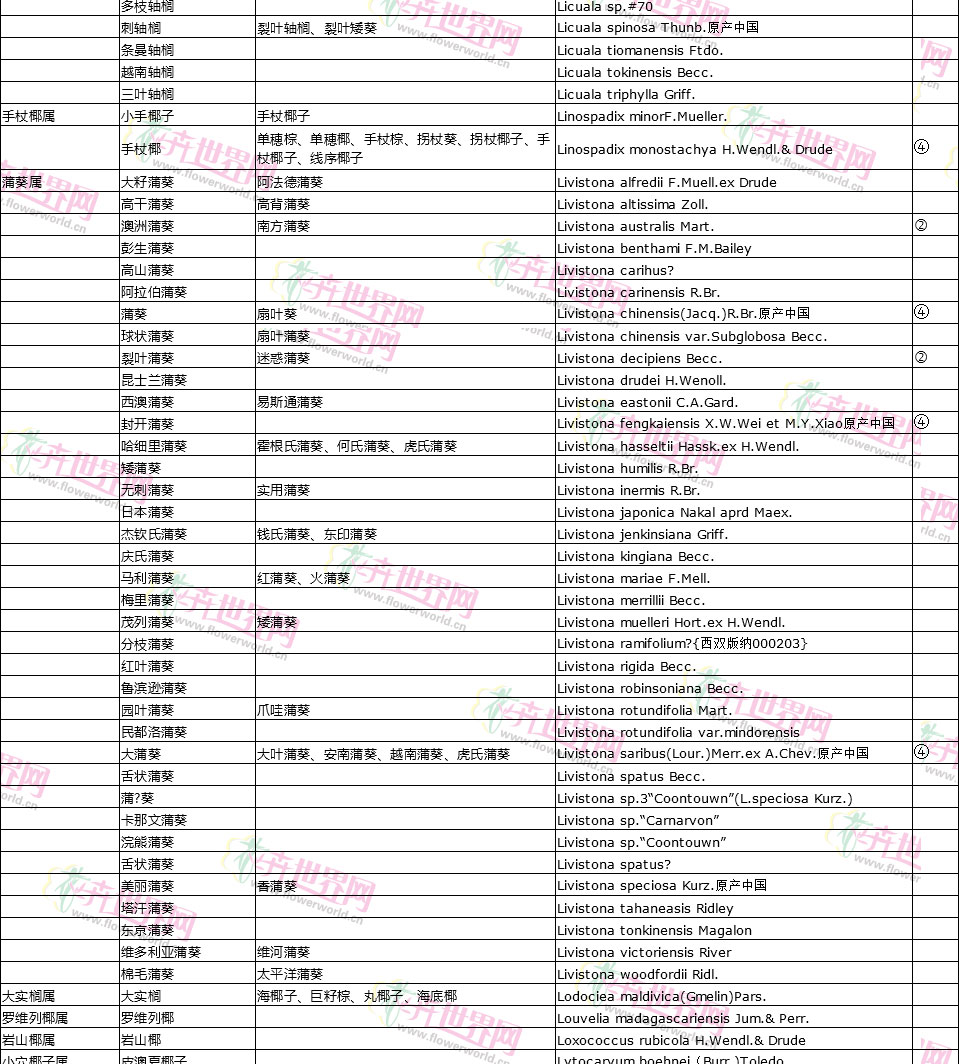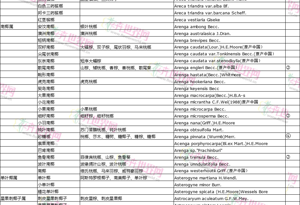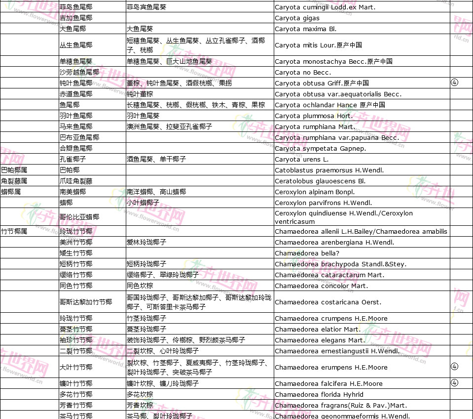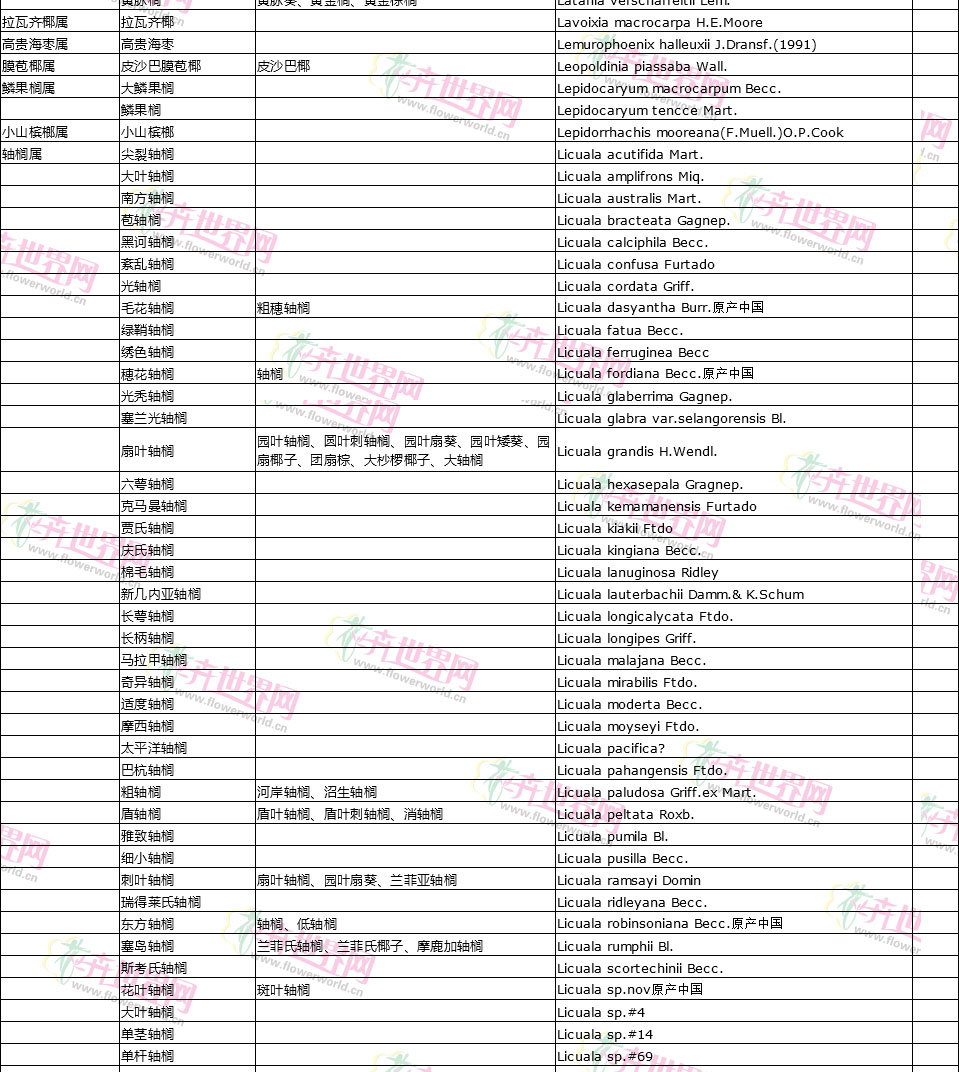 棕榈植物别名对照
