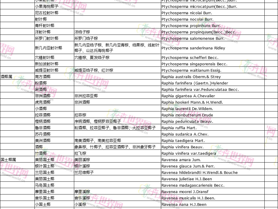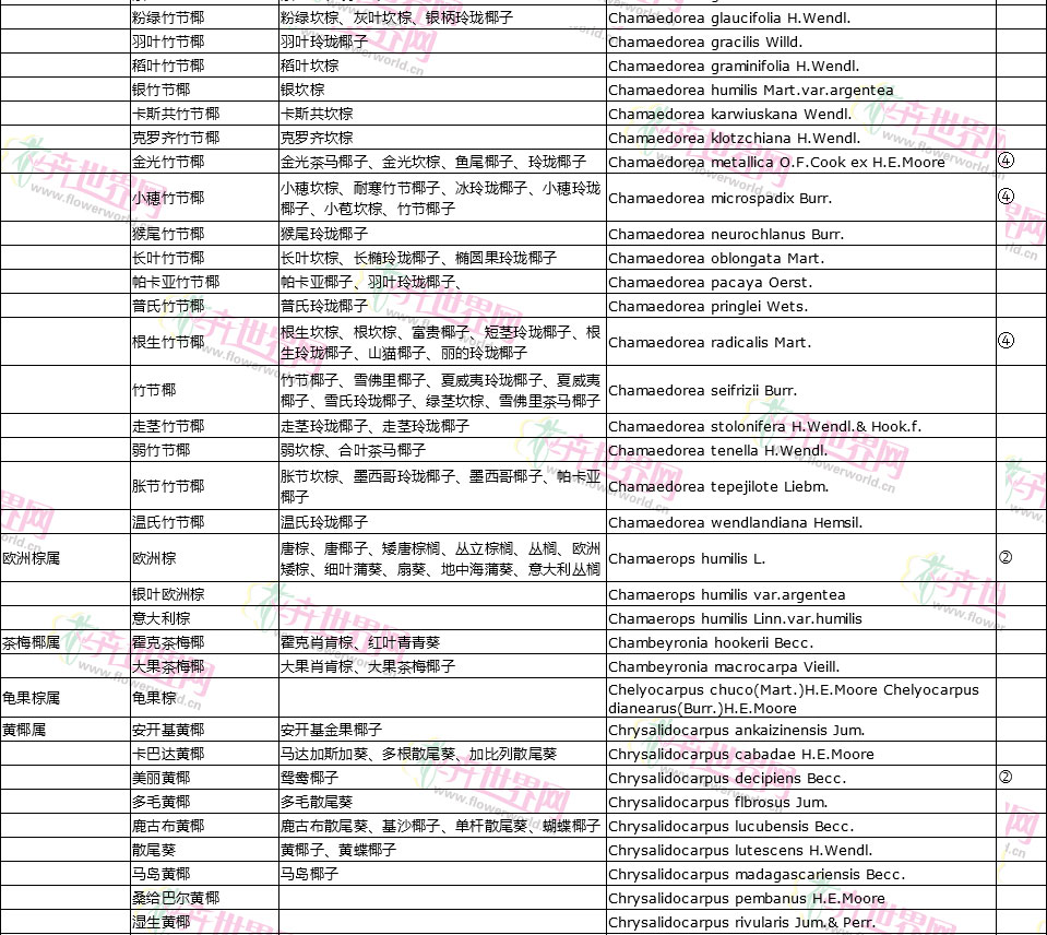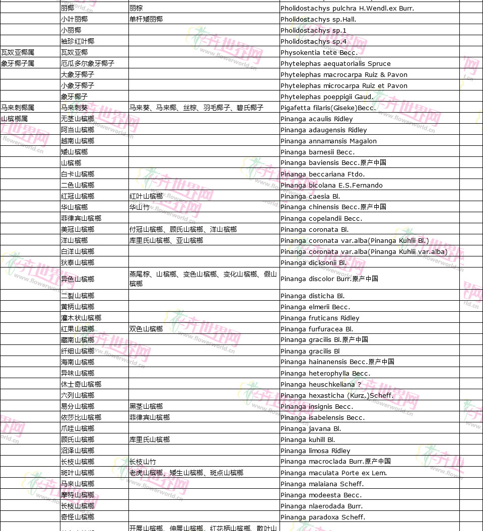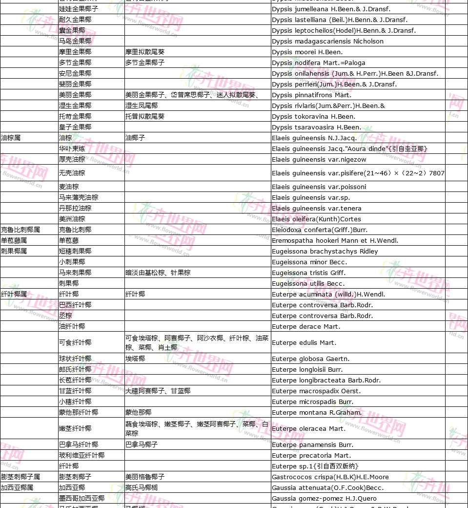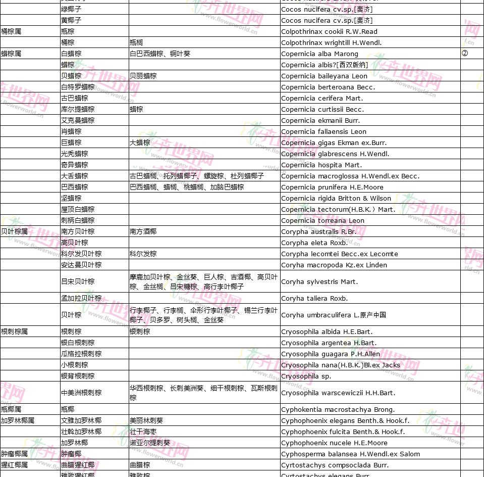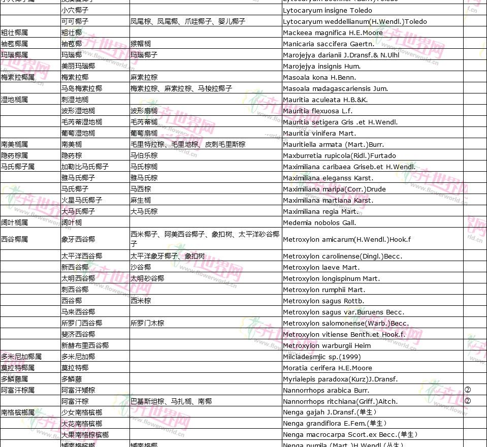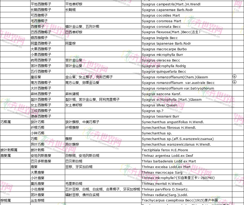 棕榈植物别名对照