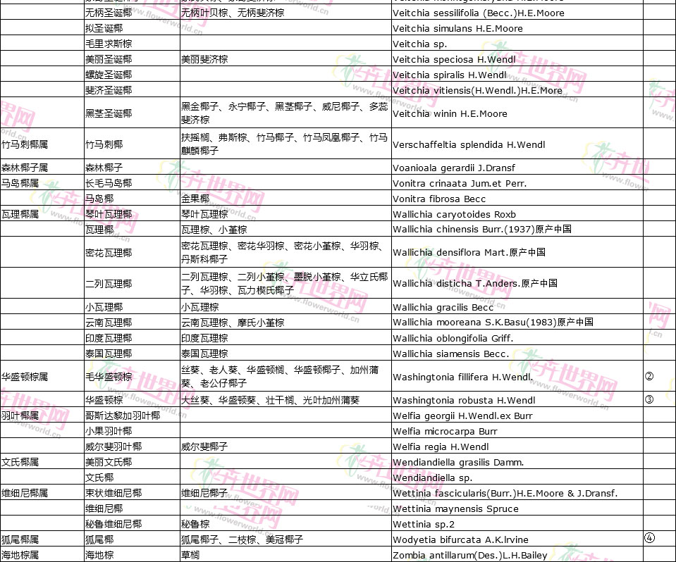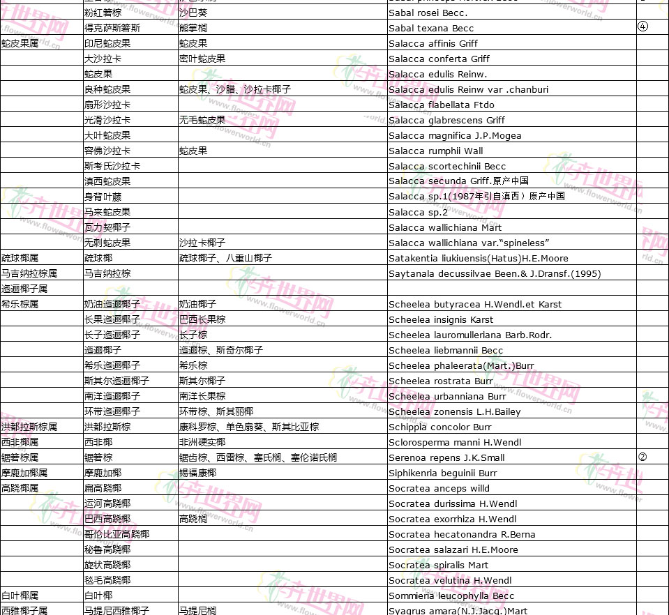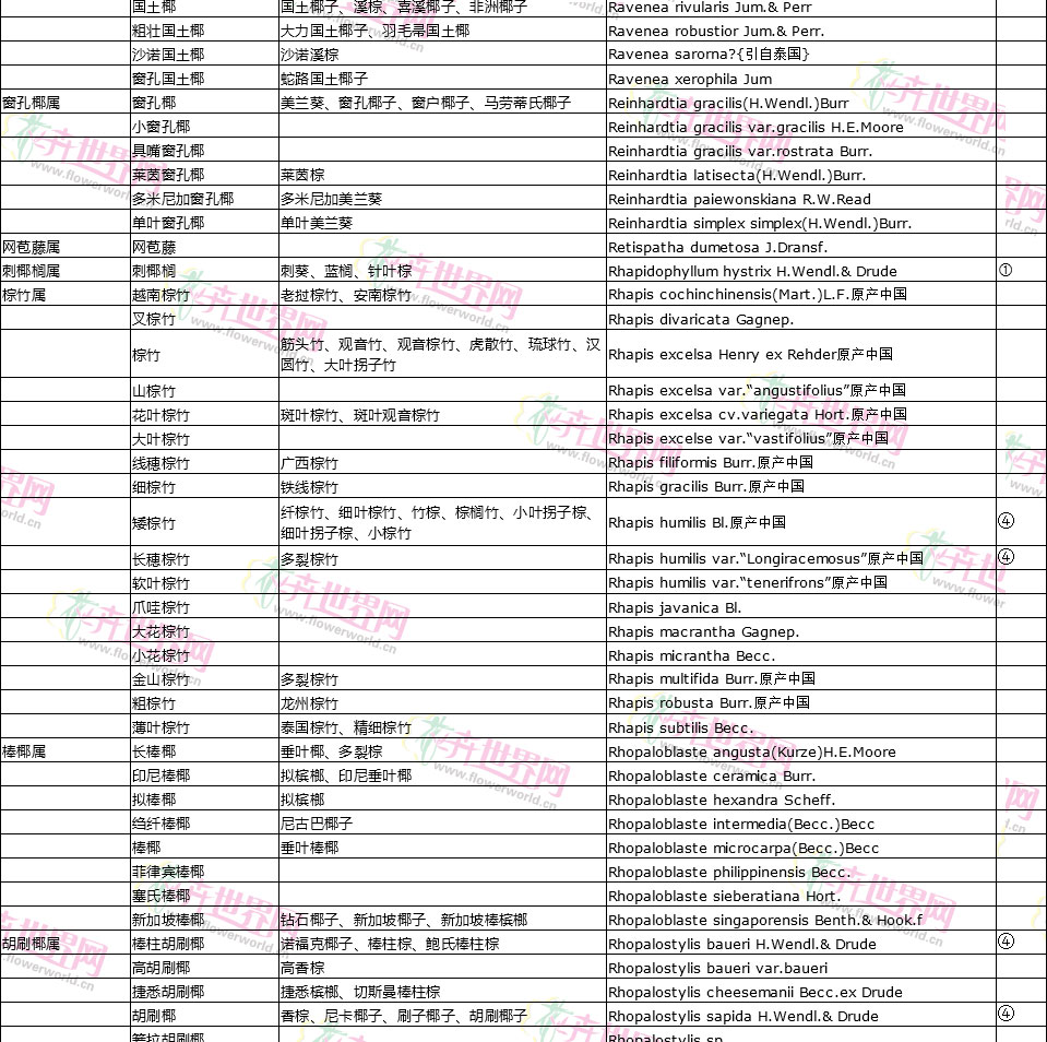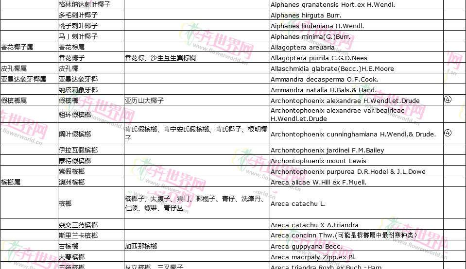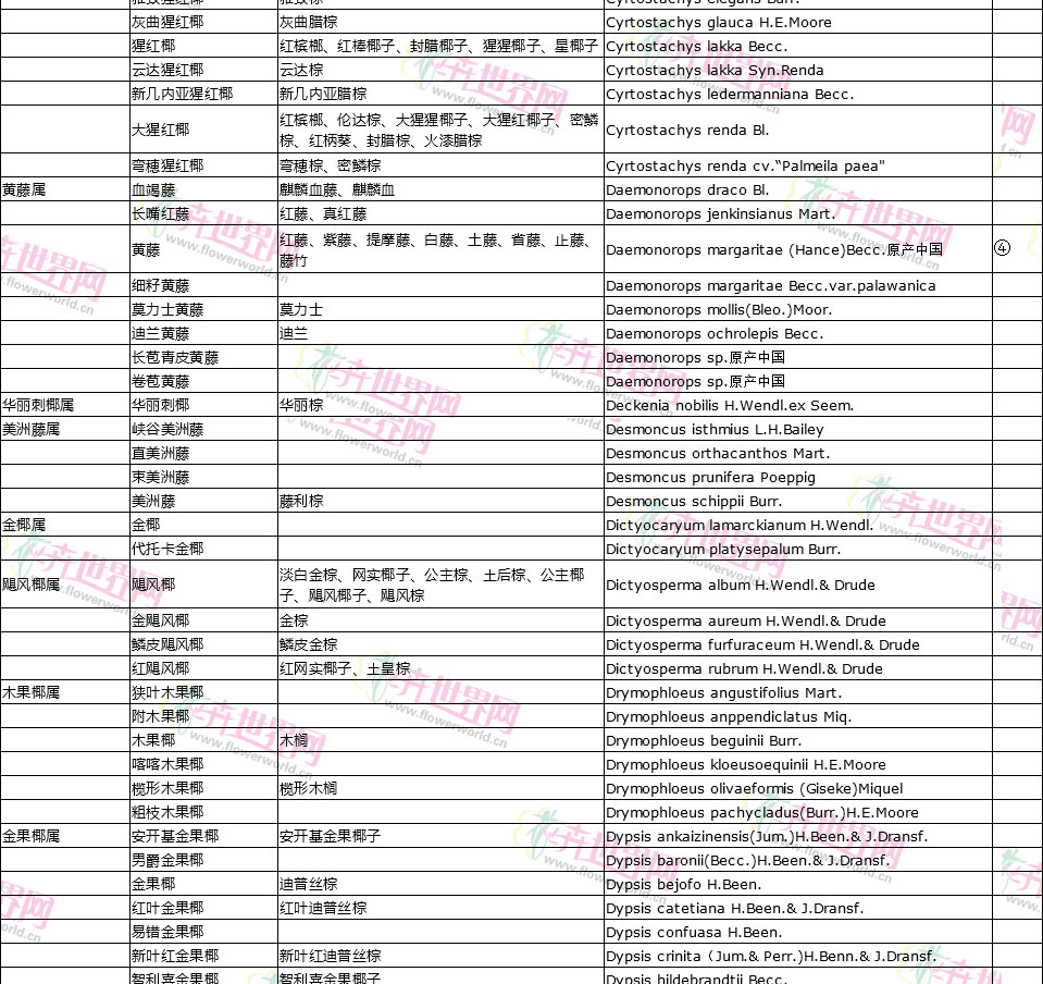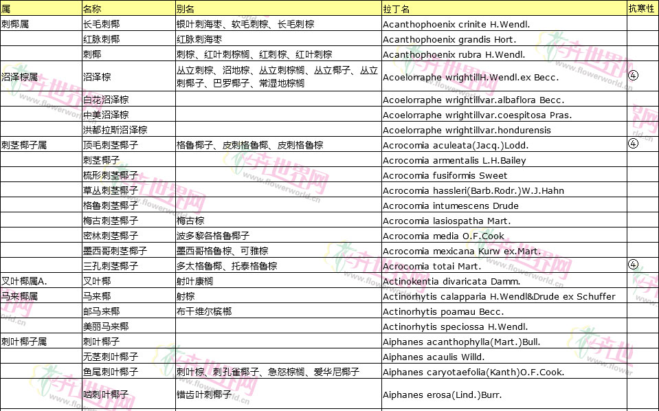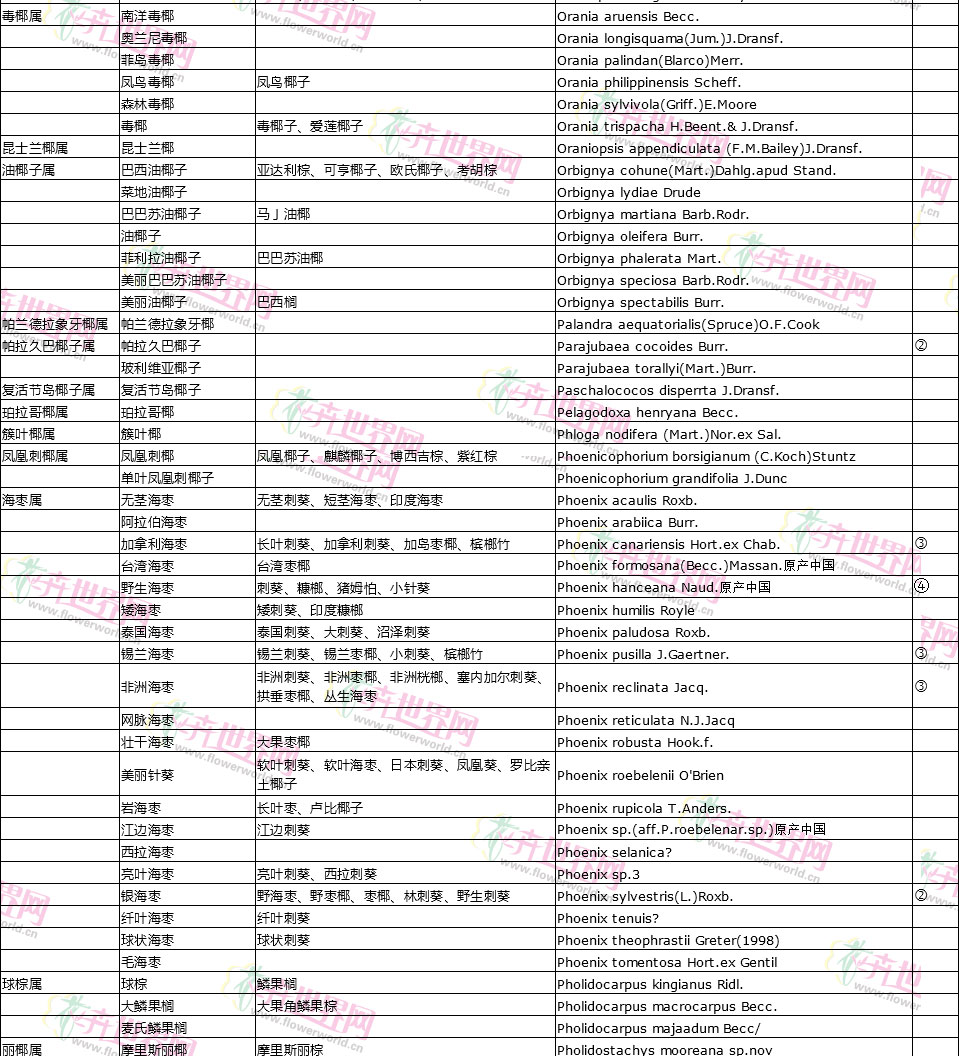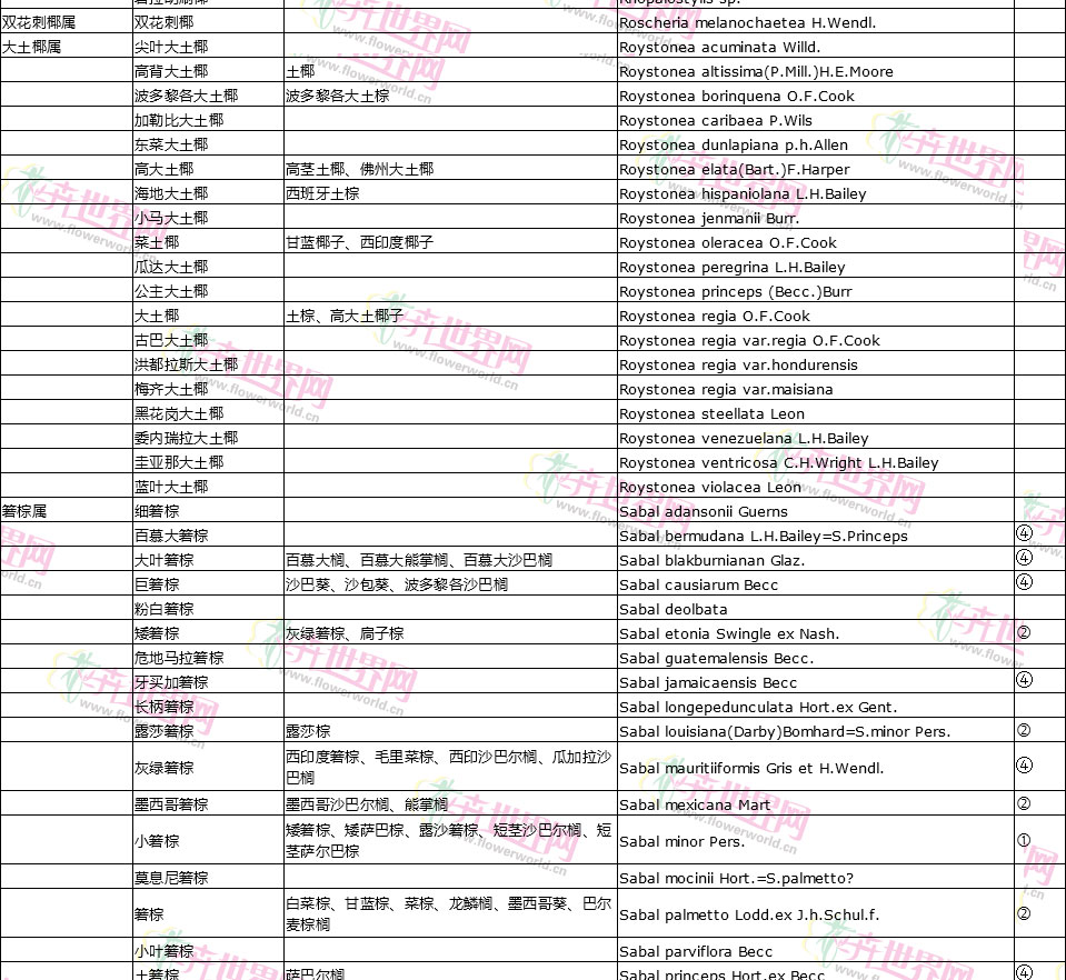 棕榈植物别名对照