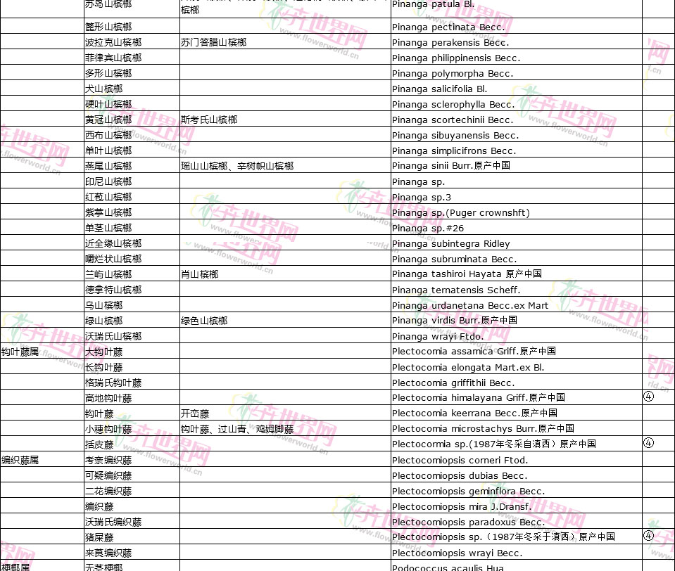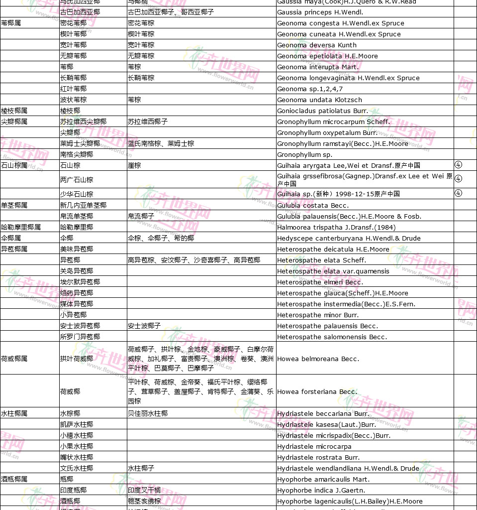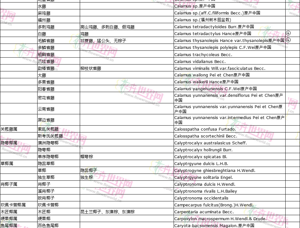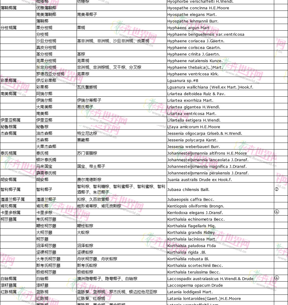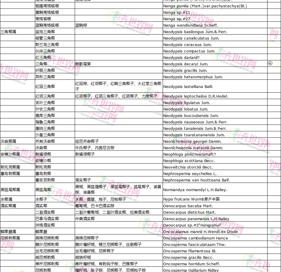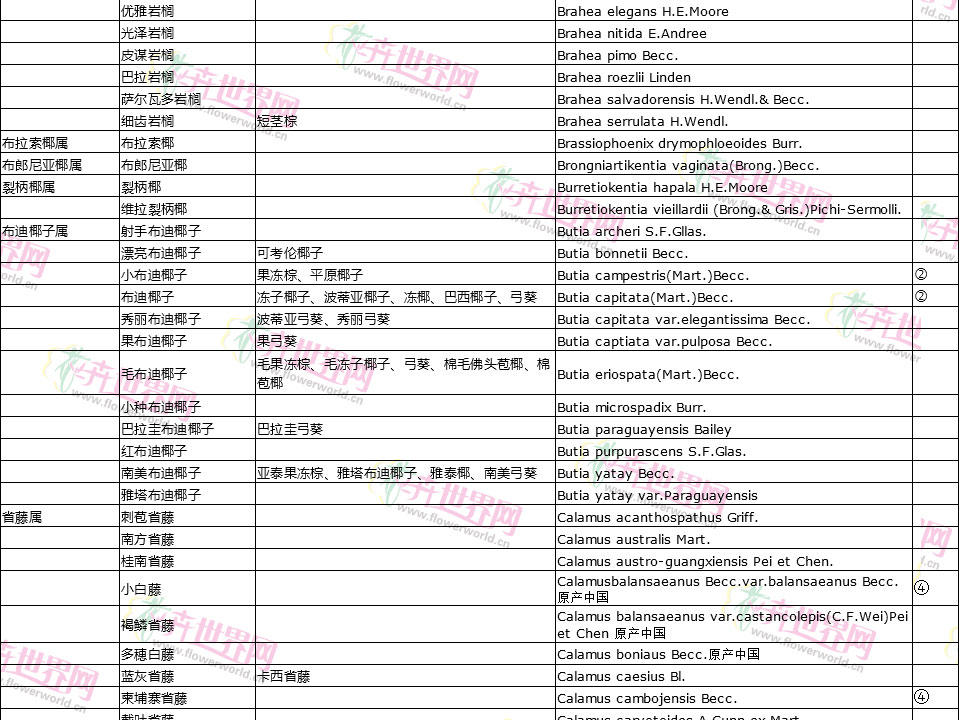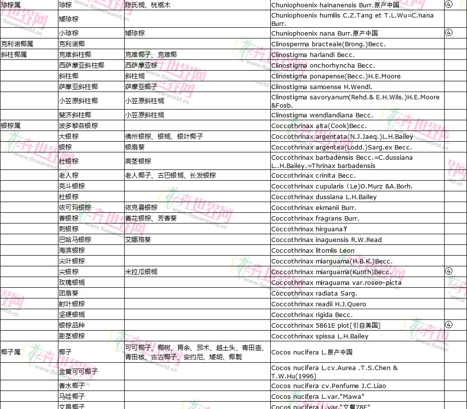 棕榈植物别名对照