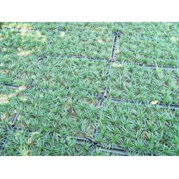 玉龙草 ‧中文名称: 玉龙草 ‧英文名称: Shortleaf Lilyturf ‧学名: Ophiopogon japonicus cv . ‘Nanus’ ‧科名: 百合科(Liliaceae)沿阶草属( Ophiopogon ) ‧别名: 地龙、短叶书带草、短叶沿阶草、书带草、铁韭菜 ‧原产地: 东南亚 ‧用途: 1.庭园地被、花坛缘植、盆景配植、迷你观叶盆栽用:生长及分生迅速,栽植地面可迅速长成一片浓密加地毡状的草皮,对水土保持有特别优良之效果。 耐阴性强、且较一般草皮耐践踏,是极佳之地被植材。 耐阴性强、且较一般草皮耐践踏,是极佳之地被植材。 ‧茎: 具有块根,根系发达,根长可及20公分以上,乳白色略粗,几无茎,植株矮小,簇生成半球团状,高约10公分。 ‧叶: 单叶,丛生,叶片长10~20公分,宽0.2~0.3公分,狭线形,叶基锐,叶尖钝,叶缘粗糙,墨绿色,上下表面光滑,下表面多少带白粉状,脉5~7条。 ‧花: 总状花序,每苞花10朵,花茎直立,淡紫色至白色。 ‧果实: 蒴果,径约0.5公分,种子深蓝色。 ‧特性: 玉龙草为百合科沿阶草属多年生草本,具有块根,根系发达,根长可及20公分以上,乳白色略粗,几无茎,植株矮小,簇生成半球团状,高约10公分。 单叶,丛生,叶片长10~20公分,宽0.2~0.3公分,狭线形,叶基锐,叶尖钝,叶缘粗糙,墨绿色,上下表面光滑,下表面多少带白粉状,脉5~7条。 总状花序,每苞花10朵,花茎直立,淡紫色至白色。 蒴果,径约0.5公分,种子深蓝色。 本种乃沿阶草之矮性变种,另有白斑变种银纹沿阶草,别称银龙,叶长45~90公分,有多数白斑沿叶脉纵走,叶面有毛不光滑。 以分株法繁殖,每3芽左右为单位分株即可,因根肉质具有养分、水分,分株后如不立即种植亦无妨,在荫处可贮放约一周左右。 生长及分生迅速,栽植地面可迅速长成一片浓密加地毡状的草皮,对水土保持有特别优良之效果。 耐阴性强、且较一般草皮耐践踏,是极佳之地被植材。