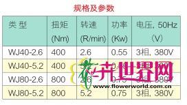 规格:功率0.55KW、0.75KW、转数2.6R/min、5.2R/min、扭矩400Nm、800Nm