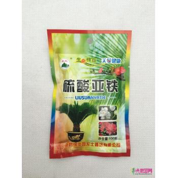 本产品为绿色或淡蓝色晶体;它基质干燥、性能稳定、经多道工序精制而成;它能有效促进花卉叶绿素形成,防止土壤偏碱、缺铁而导致花卉的黄化病(失绿症),是草、木、藤本和铁树类植物不可缺少的重要元素;特别对因地下水长期灌溉的花卉,必须要定期喷施或定期灌溉,以调节土壤酸碱度,促进花卉生长旺盛。硫酸亚铁适用于铁树、杜鹃、米兰、茉莉、含笑、山茶、兰花、金橘等。