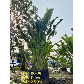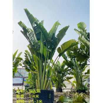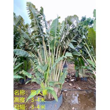 旅人蕉(学名:Ravenala madagascariensis Sonn.)旅人蕉科植物,树干像棕榈,高5-6米。叶2行排列于茎顶,像一把大折扇,叶片长圆形,似蕉叶。花序腋生,佛焰苞内有花5-12朵,排成蝎尾状聚伞花序;萼片披针形,革质;花瓣与萼片相似,惟中央1枚稍较狭小;雄蕊线形,花药长为花丝的2倍;子房扁压,花柱约与花被等长。蒴果开裂为3瓣;种子肾形;被碧蓝色、撕裂状假种皮。