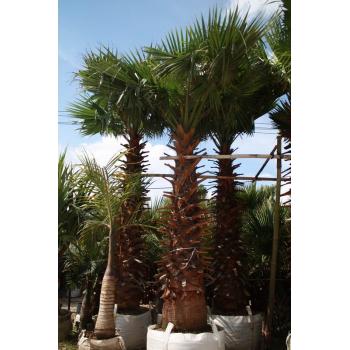 老人葵 学名:Washingtonia filifera Wendl. 拉 丁 名: Washingtonia filifera 别名:老人葵,华盛顿葵 科属:棕榈科 属:棕榈科 生态分类:木本植物常绿乔木类 观赏分类:荫木类 高度范围:20 (M) 形态特征: 其干枯的叶子下垂,覆盖于茎干,叶片间一屡屡白丝状纤维,似老翁白发. 树干粗壮通直,近基部略膨大。树冠以下被以垂下的枯叶。叶簇生干顶,斜上或水平伸展,下方的下垂,灰绿色,掌状中裂,圆形或扇形折叠,边缘具有白色丝状纤维。肉穗花序,多分枝。花小,白色。核果椭圆形,熟时黑色。花期6-8月。 生长习性: 喜温暖、湿润、向阳的环境。较耐寒,在-5度的短暂低温下,不会造成冻害。较耐旱和耐瘠薄土壤。不宜在高温、高湿处栽培。 景观用途: 是美丽的风景树,干枯的叶子下垂覆盖于茎干似裙子,有人称之为“穿裙子树”,奇特有趣;叶裂片间具有白色纤维丝,似老翁的白发,又名“老人葵”。宜栽植于庭园观赏,也可作行道树。 这是棕榈科植物中较耐寒的种类之一,可耐-6℃的低温,抗风抗旱力均很强,生长迅速,树干直而挺拔,基部显著膨大,,粗壮而呈红褐色的树干格外引人注目