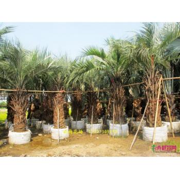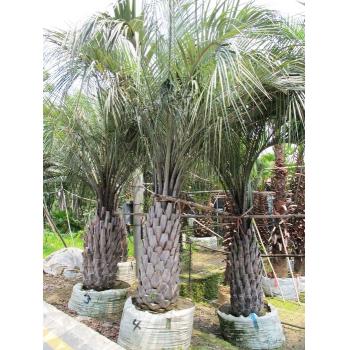 别 名:冻子椰子 拉丁名:Butia capitata (Mart.) Becc 产地分布: 巴西南部及乌拉圭。我国南方各省有引种栽培,表现良好。 形态特征: 单干型。株高7-8米。 茎干:灰色,粗壮,平滑,但有老叶痕。 叶片:最典型的羽状叶,长约2米,叶柄明显弯曲下垂,叶柄具刺,叶片蓝绿色。 花序:源于下层的叶腋,逐渐往上层叶腋生长。 果实: 椭圆形,长2.5厘米,黄至红色,肉甜。 种子:18毫米(3/4英寸)长,椭圆,一端是三个芽孔。 生长习性: 喜阳光,是抗冻性最强的棕榈植物之一,布迪椰子的气候适应范围较广,从亚热带至温带,并能耐严寒,可耐-22℃干冷两周之久。适合海滨地区以及干旱地区种植。 对土壤要求不严,但在土质疏松的壤土中生长最好。 园林用途: 优美的株形是其主要的观赏特征,是理想的行道树及庭园树,而且它的果实还可提取果酱和果冻。 布迪椰子形太优美,可广泛种植于热带、亚热带及温带地区,是一种极受欢迎的园林绿化,盆栽树种,其果实可食,在原产地常将其加工成果冻食用。