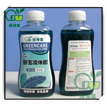 品 牌:“绿博莱”高效环保液体肥(营养液)产品系列-观叶专用(30-10-10) 净含量:80毫升/每瓶/180毫升/瓶 价 格:6.80元/13.8元根据容量大小 有效期:3年 形 态:高浓缩液体 零售网店:http://shop36212012.taobao.com 产品特点: l、全水溶,全离子态,不含任何激素,便于植物直接吸收;不含标明养份以外的任何多余成份,不含硫、氯离子,可以安全使用。 2、高氮配方,植物在弱光条件下,也可以很好的生长,促进根系发育,使植株健壮,叶色浓绿,肥厚,减少病虫发生的激率,减少黄叶。 3、铁、锰、铜、锌微量元素为螯合态花卉能迅速完全的吸收利用。 4、本品添加了离子保持剂,可以促使各个元素直接的以离子态被植物吸收,打破元素间的颉抗作用,解决家庭养植中缺素的难题。 5、本品为无污染、无公害、无残留的高效速溶肥料。 使用方法: 1.兑水比例为1000—1200倍(每瓶盖加水5升)配成稀释液使用 2.水培:每7—1 5天更换一次稀释液. 3.土培:用稀释液浇根每1 5天一次. 4.叶面施肥:用稀释液喷洒植物叶面,7—1 0天一次. 5.水晶泥用稀释液浸泡使用效果更佳. 6. 可花、鱼共养本品五大优势: 技术领先----美国环保肥料有限公司(美国GREENCARE FERTILIZER公司)来自美国伊利诺州,是目前全球肥料科技前沿的研究和生产企业之一。其独刨的离子保持剂可以使各种营养元素都能以离子状态存在于同一种溶液中,避免颉抗作作用,在美国乃世界的园艺上得到广泛的应用,被誉为世界肥料新技术的领导者,是肥料生产的又一场科技革命。 绿色环保---绿博莱园艺液体肥是一种高浓缩、全元素、多功效、养分利用率高、使用范围广、世界领先水准的绿色环保新型液体复合肥,引导着绿色液体肥料新潮流,是绿色环保肥料之首选。 综合功效----绿博莱园艺液体肥是微肥和复合肥完美的结合,各种营养元素均衡配方,微量元素为螯合态,配以离子 保持剂,能有效消除离子间的颉抗作用,相互促进吸收,吸收迅速、利用率高,效果显著,微量元素 总含量为同类产品十倍以上,不会造成营养元素的缺乏。 性价比高----绿博莱园艺液体肥品种多样,一肥多用,可喷、可浇、可水培、可浸泡水晶土、可花和鱼共养。 品牌保障----我们根据中国园艺市场的需求和美国环保肥料有限公司合作销售的“绿博莱”系列肥料产品,以优质 高效、平衡、环保著称,改变了落后的传统施肥观念,以提供优质产品致力于中国园艺水平与世界园 艺先进水平的全方位接轨。
