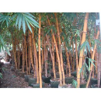 黄金竹 学名:P. sulphurea cv. houzeauana 亦称绿皮黄筋竹、碧玉间黄金竹(《竹谱详录》)。竹竿绿色间有淡黄色纵槽,余同刚竹。常见混生于刚竹林中。 玉韵竹和黄金间碧玉竹在园林景观中的比较 玉韵竹和黄金间碧玉竹是南方大型丛生竹子,是营造岭南特色竹大型竹林景观的优良观赏植物,广州富韵竹园林绿化工程有限公司在竹海景观、竹子长廊、绿化广场、竹径通幽、园林点缀、隔音围墙、室内绿化、天井绿化工程等地方进行设计和施工,取得了很好的效果,把竹子的优美韵律发挥得淋漓尽致,把园林绿化的品味提升到中国竹文化的档次,把人文景观和自然景观和谐地统在-起,营造出朴素、自然、清新的山水园林。下面对玉韵竹和黄金间碧玉竹作详细的介绍: 玉韵竹是南方大型丛生竹子,竹杆黄色带有绿色条纹,分枝高, 新秆绿色披白粉并间有绿色条纹,老秆浅金黄色间有碧绿色条纹,色泽光鲜夺目。竹丛内竹秆间生长紧凑,竹秆顶端则弯曲下垂呈钧鱼杆的钧线状。叶片披针形,青翠婆娑,形态高雅,竹子冠幅8-15米,直径粗达15公分。高度达12-20米,观其形态,潇洒飘逸如参天大树。 玉韵竹经过几年生长后,竹子的色泽越来越金光闪烁,子孙同堂,金色竹秆在绿色竹秆和绿叶的衬托下,光芒四射,蓬荜生辉,观赏竹子的吊丝交叉有序,相映成趣,充分体现出竹子的韵味。 玉韵竹金玉相间,象征金玉满堂,福寿安康,节节高升,生意兴隆。 设计风景观赏竹子长廊,把竹子蓬勃洒脱,曲径清幽,虑心有节,挺拔坚韧,冬不落叶,四季长青的品质表达淋漓致尽,令游客叹为观止,流连忘返。 黄金间碧玉竹是南方大型丛生竹,竹秆金黄色,节间带有绿色条纹。黄金间碧玉竹粗达10公分,高达18米,此竹色彩美丽, 点缀美化环境,金碧生辉,具有很好的观赏性,此竹粗生易长,是制作假竹子的优良竹材,黄金竹名蕴含万两黄金的内涵,象征事业辉煌,财源滚滚。可制作礼品篮等工艺品,建造金色竹门、竹走廊或竹屋等,使游客耳目一新。 一年四季可营造大型园林竹景,马上获得优美的竹林景观,是著名观赏竹之一。