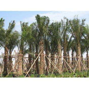油棕属 属中文名:油棕属 属拼音名:youzongshu 属拉丁名:Elaeis 中国植物志:13(1):141 描 述:Elaeis Jacq. 油棕属,棕桐科,只有油棕 E. guineensis Jacq. 1种和多数变种,产热带非洲,核仁的油可制人造乳酪,为很好的食品,由果皮榨出的名棕油或棕榈油,是工业上一种优良的润滑油,或制肥皂用,树干内流出的液汁可为饮料,叶柄和叶可盖房子,我国海南、云南、广西南部、福建和台湾均有引种,惟数量不多,油棕喜生于温热的湿谷中,在原产地干植后4-5年便能结实,16年后产量增加,此后可继续结实至少60年。直立乔木;干单生,高4-10米;叶极大,顶生,羽状全裂,裂片线状披针形,长达1米,叶柄边缘有刺;佛焰花序短而厚,由叶腋内抽出,雌雄花序分生;雄花小,为稠密的穗状花序,总轴延伸于外似一粗芒;萼片和花瓣长方形;雄蕊6,花丝合生成一管;雌花远较雄花为大,有长角状的苞片;子房3室;果卵状或倒卵状,长约4厘米,聚合成稠密的果束,有种子1-3颗;果皮油质,内果皮硬,有顶孔2一4个。