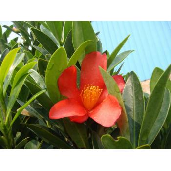 四季红山茶又称杜鹃红山茶(Camellia azalea),张氏红山茶(C. changii),分类上它隶属山茶科(Theaceae)山茶属(Genus Camellia),1985年发现于广东阳春。 直到2003年人们才真正认识到这是山茶属中唯一的一个花色艳红、能够四季开花的奇特原种,从而成为继金花茶之后又一个引起茶花世界轰动的我国独有的宝贵山茶种质资源。 四季红山茶的花朵为艳红色,花朵稠密,花期独特,一年四季皆可开花,繁花期在5-10月,耐高温耐晒抗逆性强、叶片浓绿光亮,叶形倒卵形,似杜鹃,植株紧凑,枝叶稠密,树形优美,具有极高的观赏价值和园林应用价值。