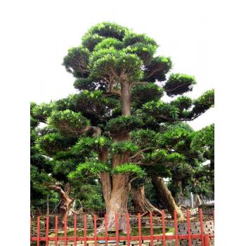 罗汉松又名罗汉杉,原产我国。喜温暖湿润和半阴环境,耐寒性略差,怕水涝和强光直射,要求肥沃、排水良好的沙壤土。 繁殖: 常用播种和扦插繁殖。播种,8月采种后即播,约10天后发芽。扦插,春秋两季进行,春季选休眠枝,秋季选半木质化嫩枝,12~15厘米,插入沙、土各半的苗床,约50~60天生根。 栽培: 移植以春季3~4月最好,小苗需带土,大苗带土球,也可盆栽。栽后应浇透水。生长期保持土壤湿润。盛夏高温季节需放半阴处养护。每2月施肥1次。冬季盆栽注意防寒,盆钵可埋入土内,并减少水。 病虫害防治: 主要有叶斑病和炭疽病危害,用50%甲基托布津可湿性粉剂500倍液喷洒。虫害有介壳虫、红蜘蛛和大蓑蛾危害,可用40%氧化乐果乳油1500倍液喷杀。 罗汉松应用: 罗汉松树形古雅,树姿秀丽葱郁,夏、秋季果实累累,惹人喜爱,南方寺庙、宅院多有种植。地栽适用于小庭院门前对植和墙垣、山石旁配置,中庭孤植,或于墙垣一隅与假山、湖石相配。也可盆栽或制作树桩盆景供室内陈设。斑叶罗汉松可作花台栽植,亦可布置花坛或盆栽陈于室内欣赏。小叶罗汉松还可作为庭院绿篱栽植。
