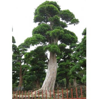 罗汉松又名罗汉杉,原产我国。喜温暖湿润和半阴环境,耐寒性略差,怕水涝和强光直射,要求肥沃、排水良好的沙壤土。 繁殖: 常用播种和扦插繁殖。播种,8月采种后即播,约10天后发芽。扦插,春秋两季进行,春季选休眠枝,秋季选半木质化嫩枝,12~15厘米,插入沙、土各半的苗床,约50~60天生根。 栽培: 移植以春季3~4月最好,小苗需带土,大苗带土球,也可盆栽。栽后应浇透水。生长期保持土壤湿润。盛夏高温季节需放半阴处养护。每2月施肥1次。冬季盆栽注意防寒,盆钵可埋入土内,并减少水。 病虫害防治: 主要有叶斑病和炭疽病危害,用50%甲基托布津可湿性粉剂500倍液喷洒。虫害有介壳虫、红蜘蛛和大蓑蛾危害,可用40%氧化乐果乳油1500倍液喷杀。 罗汉松应用: 罗汉松树形古雅,树姿秀丽葱郁,夏、秋季果实累累,惹人喜爱,南方寺庙、宅院多有种植。是高档庭院树种。地栽适用于小庭院门前对植和墙垣、山石旁配置,中庭孤植,或于墙垣一隅与假山、湖石相配。也可盆栽或制作树桩盆景供室内陈设。斑叶罗汉松可作花台栽植,亦可布置花坛或盆栽陈于室内欣赏。小叶罗汉松还可作为庭院绿篱栽植。