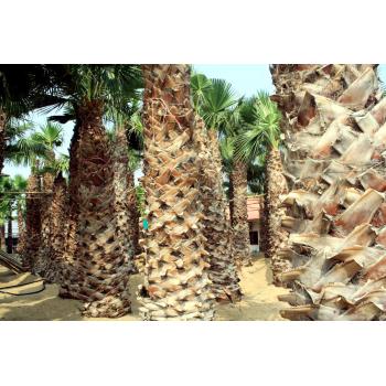 叶子下垂,覆盖于茎干,叶片间一屡屡白丝状纤维,似老翁白发。树干粗壮通直,近基部略膨大,叶簇生干顶,斜上或水平伸展,下方的下垂,灰绿色,掌状中裂,圆形或扇 形折叠,边缘具有白色丝状纤维。 老人葵喜阳光充足、气候温暖的生长环境,耐热、耐寒、耐湿、耐旱、耐贫瘠、抗污染、易移植。树形壮大,成长快,是美丽的风景树,干枯的叶子下垂覆盖于茎干似裙子, 有人称之为“穿裙子树”,奇特有趣;叶裂片间具有白色纤维丝,似老翁的白发,又名“老人葵”,成年树高大雄伟,最高可达20m,头径50-90cm,树冠优美,叶大如扇,四季常 青。掌状叶裂片间在幼时具白色的卷曲的丝状纤维, 能给人一种遐想万缕的感受。 沿长江流域一带和长江一南地区均可种植,尤其列植为行道树或者绿地添景树,景观优美。在公路两旁,由老人葵构成的美丽景观会给驾乘人员一种愉悦的视觉享受,足以消 除旅途疲劳。除了作为道路绿化树种外,被大量应用为园景树、行道树,或装点于立交桥畔、别墅宾馆。在公园、广场、河滨等较宽阔地带,孤植或群植,营造出绮丽多姿的热带 、亚热带风光。 目前有几个房地产楼盘栽种上老人葵后显得很有特色,提高了整个楼盘的景观档次:成都府南河畔种了大遍老人葵表现良好,很受群众喜爱;四川温江荣星棕榈园有各种规格 的老人葵近两万株,从近六年的生长情况来看,表现优良,形状美观。成年老人葵的叶裙长达10多米,能给人历尽沧桑、万古长青之感,同时,作为绿化苗木生产,老人葵极具市 场潜力,它是目前绿化苗木中增值最快的树种之一。 竭诚欢迎国内外客户莅临指导、品鉴! 电话:13929999521 13727414265 Q Q:115807616