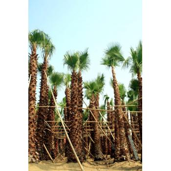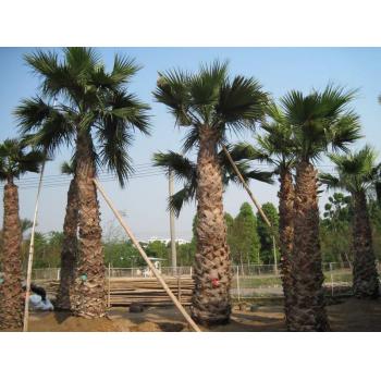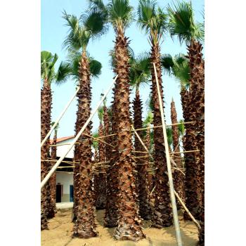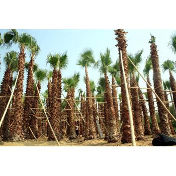 叶子下垂,覆盖于茎干,叶片间一屡屡白丝状纤维,似老翁白发。树干粗壮通直,近基部略膨大,叶簇生干顶,斜上或水平伸展,下方的下垂,灰绿色,掌状中裂,圆形或扇 形折叠,边缘具有白色丝状纤维。 老人葵喜阳光充足、气候温暖的生长环境,耐热、耐寒、耐湿、耐旱、耐贫瘠、抗污染、易移植。树形壮大,成长快,是美丽的风景树,干枯的叶子下垂覆盖于茎干似裙子, 有人称之为“穿裙子树”,奇特有趣;叶裂片间具有白色纤维丝,似老翁的白发,又名“老人葵”,成年树高大雄伟,最高可达20m,头径50-90cm,树冠优美,叶大如扇,四季常 青。掌状叶裂片间在幼时具白色的卷曲的丝状纤维, 能给人一种遐想万缕的感受。 沿长江流域一带和长江一南地区均可种植,尤其列植为行道树或者绿地添景树,景观优美。在公路两旁,由老人葵构成的美丽景观会给驾乘人员一种愉悦的视觉享受,足以消 除旅途疲劳。除了作为道路绿化树种外,被大量应用为园景树、行道树,或装点于立交桥畔、别墅宾馆。在公园、广场、河滨等较宽阔地带,孤植或群植,营造出绮丽多姿的热带 、亚热带风光。 目前有几个房地产楼盘栽种上老人葵后显得很有特色,提高了整个楼盘的景观档次:成都府南河畔种了大遍老人葵表现良好,很受群众喜爱;四川温江荣星棕榈园有各种规格 的老人葵近两万株,从近六年的生长情况来看,表现优良,形状美观。成年老人葵的叶裙长达10多米,能给人历尽沧桑、万古长青之感,同时,作为绿化苗木生产,老人葵极具市 场潜力,它是目前绿化苗木中增值最快的树种之一。 竭诚欢迎国内外客户莅临指导、品鉴! 电话:13929999521 13727414265 Q Q:115807616