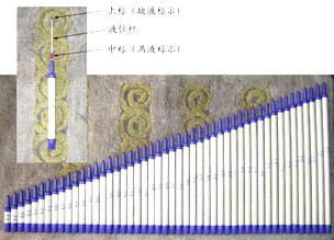 该液位计在液位杆上设有两个红色标示,分别为上标和中标。上标为缺液标示,当上标降至液位计上口平面,约有1/3标体进入液位计上口内时,表明盆内营养液或水已经用完,您应及时添加营养液或水。中标为满液标示,向盆内添加营养液或水时,红色中标将从液位计上口浮出,当中标露出液位计上口平面约有1/2时,表明盆内营养液或水已经加满。中标是活动的,可以在液位杆上上下移动,您可以利用中标随意设定花盆内营养液或水的深度。 液位计上帖有带H×××符号的标签, 如“H280”,H280表示这个液位计可以用于盆内侧壁高为280毫米的花盆,即液位计H与盆内的侧壁高H相同,安装好后的液位计顶端高出花盆上沿2厘米。 安装方法: 1、无底孔水培花盆可直接靠在盆的内壁上,向盆内加水,加至您需要的深度,然后调整液位计中标高度,使红色中标露出液位计上口0.5cm。 2、东兴第四代无土花盆需将液位计从隔层的开口处插入盆内,靠在盆的内壁上,向盆内加水,加至盆底孔有水流出止,然后调整液位计中标高度,使红色中标露出液位计上口1cm。 该液位计为组装式构造,加工灵活方便,现有从8厘米到60厘米(H80-H600)计53个规格的产品,还可以根据您的需要随时加工生产任意规格的产品。