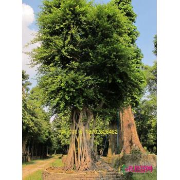 榕树 【拉丁名】Ficus microcarpa 【别名】细叶榕、成树、榕树须 【占地】大约20公顷左右 [编辑本段]简介 即孟加拉榕树(Ficus benghalensis)或印度榕树(F. indica)。 桑科(Moraceae)榕属(Ficus,即无花果属)乔木。原产于热带亚洲。榕树以树形奇特,枝叶繁茂,树冠巨大而著称。枝条上生长的气生根,向下伸入土壤形成新的树干称之为“支柱根”。榕树高达30米,可向四面无限伸展。其支柱根和枝干交织在一起,形似稠密的丛林,因此被称之为“独木成林”。 在我国热带、亚热带地区,冠以榕树名的不只有细叶榕,屈指一算,还有八九种,如高山榕、柳叶榕、垂叶榕、金叶垂叶榕、菩提榕、印度橡胶榕、大叶榕、金叶榕、花叶垂叶榕等。这些榕树四季常青,姿态优美,具有较高的观赏价值和良好的生态效果,广栽于南方各地。 [编辑本段]形态特征 桑科椿属常绿大乔木,高20-25米,气生根。叶革质,椭圆形、卵状椭圆形或倒卵形,颜色呈淡绿色,长4-10厘米,宽2-4厘米。花序托单榕树---福州森林公园千年古榕王生或成对生于叶腋,扁倒卵球形,直径5-l0毫米,乳白色,成熟时黄色或淡红色; 雄花和雌花同生于一花托中。