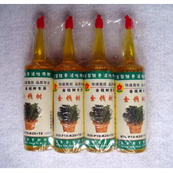 品名:金钱树液肥 包装:每支120ml,每排4支,每件20排。 功能特点:根据植物对钙镁的特殊需求的理想配方,适用于金钱树、金钻、红掌等。促进根系生长,枝叶翠绿,茎杆粗壮。促植物进健康成长,增强抗病力。