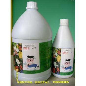 产品说明 鱼油,粹取天然性动物原料,经高温消毒,在发酵槽内充分分解、发酵及微生物处理等过程浓缩而成。能直接供给植物全期所需氮、磷、钾(5-2-2)、微量元素及有机质。 ★100%高纯度有机肥 ★肥效稳定不伤植物 ★促进植物全期生长 ★改善果蔬及花卉品质 ★降低栽培介质盐基,提高肥料有效状态 用途:适用于栽培植物、花卉、草坪、灌木、行道树、柑桔及果树 使用方法:本产品可与农药、肥料混合使用,室内植物500倍(一瓶盖=10CC+水5公斤)室外植物250倍(二瓶盖+水5公斤),每周施用一次。 备注:本产品为天然产品,贮存期间易沉淀,使用前请摇一摇。贮存期间置阴凉处,贮存时间不影响肥效。