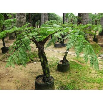 桫椤,别名:笔筒树 桫椤树属蕨类植物门桫椤科,属蕨类孢子植物,又称黑桫椤、树蕨、刺桫椤、龙骨凤、笔简树等。为白垩纪时期遗留下来的珍贵树种。是现今仅存的木本蕨类植物。据资料显示,桫椤的出现距今约三亿多年,比恐龙的出现还早一亿五千多万年,是研究植物形成、植物地理学及地球历史变迁的好材料,具有重要的保护价值和科学研究价值,故有“活化石”之称的桫椤,被列为国家一类保护植物。 树形如蕨类,主干高3—8米,叶顶生羽状,长羽轴和主脉下面有略呈状鳞片,胞子囊生于小脉分叉占凸起的囊托上,囊群盖近圆球形,成熟时开裂囊群下,喜潮湿温凉,云雾绕绕的环境,生长于林下,溪沟两旁,一般海拔在500—800米之间适合生长。 繁殖:桫椤树是无性繁殖,那些小圆点就是桫椤树的本种孢子体,它生长缓慢,生殖周期长,孢子萌发和配子体发育以及配子的交配都需要温和而湿润的环境。 实用价值 (一)研究价值:由于桫椤科植物的古老性和孑遗性,它对研究物种的形成和植物地理区系具有重要价值,它与恐龙化石并存,在重视恐龙生活时期的古生态环境,研究恐龙兴衰,地质变迁具有重要参考价值。 (二)观赏价值:桫椤树形美观,树冠犹如巨伞,虽历经沧桑却万劫余生,依然茎苍叶秀,高大挺拨,园艺观赏价值极高。 (三)药用价值:桫椤树干外皮坚硬,花纹美观,削去外皮的髓部可作药用,具有味辛、微苦性平、能祛风湿、强筋骨、清热止咳。常用来治疗跌打损伤、风湿痹痛、肺热咳嗽、预防流行性感冒、流脑以及肾炎、水肿、肾虚、腰痛、妇女崩漏、中心积腹痛、蛔虫、蛲虫和牛瘟等。内茎液汗,外用可治癣症。其茎杆髓部含淀粉大约在25—30%左右,可提取淀粉代食品,其根茎具有清热解署等功效。