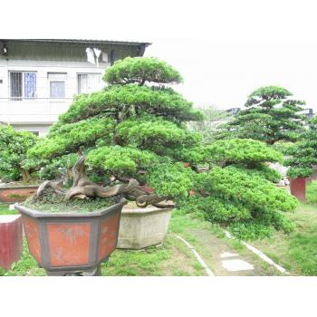 真柏,学名:Juniperus chinensisvar.Sargentii Henry,属柏科,圆柏属,常绿灌木,又名偃柏,日本称“槙柏”,原产日本,在我国分布于东北张广才岭,海拔1400米山地,苏联也有分布。 特征:主干低矮,呈葡萄状,小枝上升作密丛状,刺形叶细短,通常交互对生或3叶轮生,长3---6毫米,紧密排列,微斜展。球果圆形,带蓝绿色;枝叶密生,树姿自然稳定,叶色深绿饱满。老树枯枝枯干和茂密的针叶相伴衬,更显出真柏观赏特征。主要栽培品种有:1、密生偃柏:植株分枝紧密,鳞形叶淡绿色,刺形叶暗绿色,顶端粉绿色;2、粉羽偃柏,植株矮生,小枝细瘦,略呈羽状,叶有白粉;3、淡绿偃柏,植株矮小,小枝紧密丛生,叶淡绿色。 习性:喜光,略耐荫,耐寒性强,亦耐瘠薄,生长于高海拔、寒冷贫瘠的高山岩隙间,要求阳光充足、通风良好,能生于岩石缝中,对土壤要求不严,中性土、石灰性土均能适应,其中以肥沃、深厚及含腐殖质丰富的土壤最宜。 繁殖:常以扦插或压条法繁殖。插穗以一年生嫩枝为佳,穗长10---15厘米,剪去中部以下小枝,插深;苗床用腐叶土掺拌沙土,宜肥沃疏松、排水良好;插后浇透水,随时搭棚遮荫,2~3月后即可生根。次年春季进行分栽移植,培育大苗。真柏常匍匐地面生长,不定根随之发生,故亦可以压条法繁殖。用扁柏或侧柏苗作砧木行嫁接繁殖,也易成活。 栽种:宜在春季3~4月进行,秋季亦可。栽种时要注意在盆孔处用瓦片垫空,以利透水,上盆栽种后,第一次水应浇足,以后稍干再浇。真柏宜置于空气湿润、阳光充足之处。冬季可置于室内越冬,盛夏须注意遮荫,防止烈日灼晒。 浇水:宜保持盆土水分充足,但不可积水。平时宜经常在枝叶上喷水,可促进健壮生长,叶色翠绿。 施肥:宜用稀薄腐熟的饼肥水或有机肥,每年3~5月份施用2~3次,秋季可在盆中放置腐熟的饼肥屑。 修剪:真柏不耐修剪,但可剪去顶尖部以促生侧枝。一般在春季抽生新枝叶时,及时修短,以保持树冠浓密。嫩枝梢不宜用剪刀切除,可用手指掐摘之,以防伤口呈锈色而影响美观。若需整修大枝条,则宜在休眠期进行。真柏的造型加工以攀扎为主,修剪为辅。一般以金属丝攀扎较方便,伸屈自如,线条流畅,并可将枝干进行扭旋,以显示古柏之雅趣。攀扎时重点将主要枝干造型扎好,小枝可攀扎也可修剪。真柏的局部枝干可以作成枯枝、枯干,即所谓“舍利干”,模仿自然界树木因长期遭受风雨雷电袭击,而形成某些枝干劈断,树皮剥落的现象,从而产生古雅奇特的效果。制作时,可先选定某些枝干(常常利用本来不需要的枝干),剪除小枝叶,从基部起剥除树皮,可用刀削,也可用手指剥。枝梢处须削成自然断折状,力求不露出人工痕迹。最后在剥去树皮的枝干上涂以石灰硫磺合剂,以防止腐朽。“舍利干”的位置安排很重要,它对整株柏树造型起着调节疏密虚实和增加对比变化的作用,故须仔细斟酌。“舍利干”可在树木的顶端,也可在枝干的中部,根据造型需要而定。自然界生长的古柏往往呈虬曲状,真柏的树形也可制作成曲干式,其次为悬崖式、斜干式和卧干式。曲干式的主干须曲折多变,特别须注意弯曲的方向和弯曲的程度的变化。悬崖式、斜干式和卧干式的主干也不可太直,而宜带几分弯曲。 病虫害防治:真柏的病害主要有锈病,虫害主要有蜘蛛,须及时注意防治。