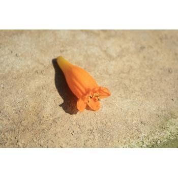 火烧花为紫葳科火烧花属小乔木植物,高达15米。常生于海拔150-1900米的干热河谷和比较湿润的河谷低地、低山丛林中,喜阳光充足的环境。短总状花序着生于老茎或侧枝上,花冠橙黄色至金黄色。是优良的园林树种,可用于公园、庭院及风景区等。火烧花,哈尼族称“啊茨麻哈能”、景颇族称“郑统刚”、傣族称“埋糯比”。花可作蔬食;其树皮、茎皮、根皮入药,可治疗痢疾,腹泻等。 火烧花(学名:Mayodendron igneum (Kurz) Kurz)绿乔木,高可达15米,胸径15-20厘米;树皮光滑,嫩枝具长椭圆形白色皮孔。大型奇数2回羽状复叶,长达60厘米,中轴圆柱形,有沟纹;小叶卵形至卵状披针形,长8-12厘米,宽2.5-4厘米,顶端长渐尖,基部阔楔形,偏斜,全缘,两面无毛,侧脉5-6对;侧生小叶柄长5毫米,顶生小叶柄长达3厘米。花序有花5-13朵,组成短总状花序,着生于老茎或侧枝上,花序梗长约2.5-3.5厘米; 花梗长5-10毫米。花萼长约10毫米,直径约7毫米,佛焰苞状,外面密被微柔毛。花冠橙黄色至金黄色,筒状,基部微收缩,长6-7厘米,直径1.5-1.8厘米,檐部裂片5,半圆形,长约5毫米,反折。花丝长约4.5厘米,基部被细柔毛,花药个字形着生,药2室,药隔顶端延伸成芒尖,花药及柱头微露出花冠管外。子房长圆柱形,花柱长约6厘米,柱头2裂,胚珠多数。蒴果长线形,下垂,长达45厘米,粗约7毫米,果爿2,薄革质,隔膜细圆柱形,木栓质。种子卵圆形,薄膜质,丰富,具白色透明的膜质翅,连翅长约13-16毫米。花期2-5月,果期5-9月 繁殖方法火烧花由于其多季开花,可以多季采种,因而播种繁殖是繁殖种苗的主要方法。其蒴果成熟时,果皮由青色转为黑褐色,此时,采下果实放在无风处晾干或晒干,裂後轻轻敲出种子,在适宜季节可即采即播,在冬季天冷时可贮藏至第二年春天播种。由于种子细小,一般采用撒播,播後覆薄土。种子播种後在25℃左右的温度下,保持播种床湿润,一般1周左右发芽,发芽率为60%至80%。幼苗生长50至60天,苗茎稍木质化时,即可移至大田栽培,1至2年可出圃,3至5年可开花。 [3] 火烧花(图2)火烧花的扦插成活率低,采用营养繁殖时可用嫁接、高空压条等方法提高成活率并进行矮化然後用于盆栽。采用营养繁殖获得的植株,一般1至2年即可开花。[3] 栽培技术火烧花原产热带亚热带地区,喜高温、高湿和阳光充足的环境,但能耐干热和半荫,不耐寒冷,忌霜冻。生长适温23至30℃,能耐0℃左右的温度,但长期处在5至6℃的低温,其枝条会受到冻害。在我国华南地区可露地栽培,其他地区只能矮化後盆栽,冬季移入室内。喜土层深厚、肥力中等、排水良好的中性至微酸性土壤,不耐盐碱。在干旱贫瘠土壤上生长缓慢。 [3] [编辑本段]应用价值 药用价值 药用部位: 树皮、茎皮、根皮。 采收加工: 树皮、茎皮:春末夏初采割,晒干。根皮:秋、冬季采挖根,洗净,剥取根皮,晒干。 功效主治: 哈尼族用树皮止泻止痢。治疗痢疾,腹泻。景颇族用茎皮解毒,截疟。治疗疟疾。根皮:用于产后体虚,恶露不尽。傣族将根皮用于牙齿痛,疲乏无力,产后体虚,恶露淋漓不止。[4] 其他用途 花可作蔬食;木材褐色带灰,和边材的差别不明晰,结构较揪木细,材质也较重、较硬;可栽培作庭园观赏树及行道树。