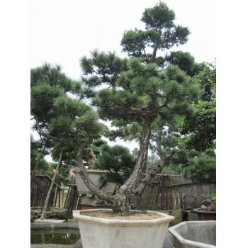 黑松 名称 黑松 别名 白芽松 |松树 拉丁名 Pinus thunbergii Parl. 科名 松科 属名 松属 编辑本段产地分布 黑松原产日本及朝鲜半岛东部沿海地区。我国山东、江苏、安徽、浙江、福建等沿海诸省普遍栽培。 编辑本段形态特征 黑松 常绿乔木,高可达30公尺,树皮带灰黑色。2针一束,刚强而粗,新芽白色,各针叶长约6~15公分,断面半圆形,叶肉中有3个树脂管,叶鞘由20多个鳞片形成,长约1.2公分。四月开花,花单,雌花生于新芽的顶端,呈紫色,多数种鳞(心皮)相重而排成球形。每个种基部,裸生2个胚球。雄花生于新芽的基部,呈黄色,上生多数雄,成熟时,多数花粉随风飘出。球果至翌年秋天成,鳞片裂开而散出种子,种子有薄翅。 编辑本段生长习性 喜光,耐干旱瘠薄,不耐水涝,不耐寒。适生于温暖湿润的海洋性气候区域,最宜在土层深厚、土质疏松,且含有腐殖质的砂质土壤处生长。因其耐海雾,抗海风,也可在海滩盐土地方生长。抗病虫能力强,生长慢,寿命长。黑松一年四季长青,抗病虫能力强,是荒山绿化,道路行道绿化首选树种。 编辑本段景观用途 黑松 经抑制生长,蟠曲造型,姿态雄壮,高亢壮丽。均富观赏价值,黑松盆景对环境适应能力强,庭院、阳台均可培养。其枝干横展,树冠如伞盖,针叶浓绿,四季常青,树姿古雅,可终年欣赏。在生长期间,宜陈放于室外阳光充足、空气流之处,不宜长时间放置于室内。多年培养的黑松桩景,老干苍劲虬曲,盘根错节。