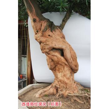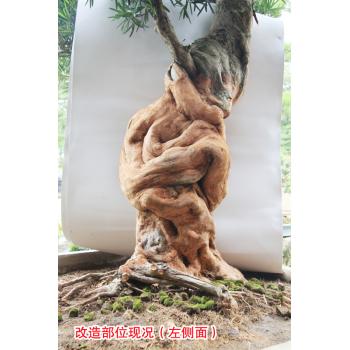 发现的艺术 每种艺术都在于发现,特别是大自然的产物。罗汉松----人们所就知的品种,现今品种不算太多,真正有观赏价值的也不过十多种,而且罗汉松易栽、易管理,从名称的吉祥到庭园的栽种及盆景的观赏,罗汉松都是人们所喜爱的种类,要想发现好的素材也不是一件容易的事,我们花卉世界收集了世界上很多珍稀品种,但绝好的素材也很难得,一个有前途的的素材从发现、构思、定位、制作、定型到作品,需要的是时间,好的作品要几十年甚至几代人的辛勤创作,才能真正成型。愚可有幸遇到一棵罗汉松,原产地是日本,发现时属庭园型,高约3.5米,但做庭园树可能是极大的浪费,如果被有钱人购得,只能成为金丝鸟,为少数人所欣赏,我尽其所能,购得此树,可能要花上我的全部精力,甚至几代人的努力,看可不可以完成一件绝品,所以我准备在网上征求爱好都者的支持,把这棵罗汉松改成国际标准的盆景,首先说说我的构思和初步定位,主要观赏面是树高壹米以下部位,壹米以上基本无用,因主体全部是历年来自然生长水线而形成的美伦美奂的树瘤,更难得的是周围水线形成各种图案尤如木雕艺术家镂空雕,每个角度图案不同,从正面看,一只小象顽皮直立,眼、耳、腿惟妙惟肖,一幅“象嘻盛世”图展现眼前,根据树型改造成一只直立嘻闹的小象可能比较合适,今刊于网上让大家共同来创作这件佳作,每个朋友都可以建议设计,或者有更好方案,一旦采用,根据采用部位的大小和整体的构思,可获得我园最新罗汉松品种两年生“金钻”壹棵,在作品创作名录中有您的大名,下面将陆续刊登创作过程以便随时求得大家的指导。 古月子僅以最真诚的求教! 2010年10月17日