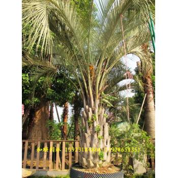 布迪椰子 [棕榈科] [椰子属] 别 名:冻子椰子 拉丁名:Butia capitata (Mart.) Becc 产地分布: 巴西南部及乌拉圭。我国南方各省有引种栽培,表现良好。 形态特征: 单干型。株高7-8米。 茎干:灰色,粗壮,平滑,但有老叶痕。 叶片:最典型的羽状叶,长约2米,叶柄明显弯曲下垂,叶柄具刺,叶片蓝绿色。 花序:源于下层的叶腋,逐渐往上层叶腋生长。 果实: 椭圆形,长2.5厘米,黄至红色,肉甜。 种子:18毫米(3/4英寸)长,椭圆,一端是三个芽孔。 生长习性: 喜阳光,是抗冻性最强的棕榈植物之一,布迪椰子的气候适应范围较广,从亚热带至温带,并能耐严寒,可耐-22℃干冷两周之久。适合海滨地区以及干旱地区种植。 对土壤要求不严,但在土质疏松的壤土中生长最好。 园林用途: 优美的株形是其主要的观赏特征,是理想的行道树及庭园树,而且它的果实还可提取果酱和果冻。 布迪椰子形太优美,可广泛种植于热带、亚热带及温带地区,是一种极受欢迎的园林绿化,盆栽树种,其果实可食,在原产地常将其加工成果冻食用。