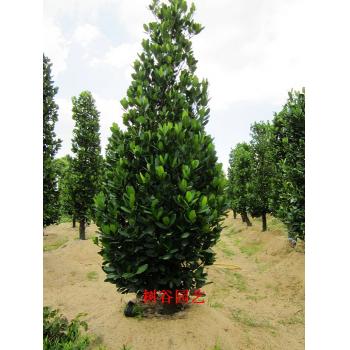 常绿乔木。高可达20余米,小枝坚韧粗壮,具4-6棱。树冠圆锥形,叶簇坚挺健美,雌雄异株,雄花具有特殊香味生长习性:耐旱抗风,幼树可大型盆栽。 叶片对生,椭圆形,全缘,厚革质长7-20厘米,宽3-7厘米,顶略钝、圆形或微凹。基部宽楔形至近圆形,上面深绿色,具光泽,下面黄绿色,中脉在下面隆起,侧脉纤细,微拱形,12-18对,两面隆起,至边缘处连接,网脉明显。叶柄粗壮,长6-15毫米。 花杂性,乳黄色,夏季开花,同株。雄花和雌花常常混合在一起,腹生或单生于叶腋部,有时雌花成簇生状,雄花成假穗状,长约10厘米;雄花萼片近圆形,革质,内方两枚较大,外方三枚较小;花瓣倒卵形,黄色,长约为萼片的两倍多,雄蕊合生成5束,每束6-10枚,束柄长约2毫米,花药双生;雌花通常具长梗,退化雄蕊合生成5束,花药萎缩状,副花冠上半部具不规则的啮齿;子房球状,外面有棱,3-5室,花柱极短,柱头钝形,5深裂,无瘤突。 核果球形,表面光滑,有臭味,几乎无柄,熟时金黄色。 种子3~4粒,色褐而光滑。 用 途 :行道树,耐暴风和浪潮侵袭,根部稳固;树脂颜料。可用作行道树、庭荫树, 幼树可做盆栽。由于它抗旱、抗盐,适于海岸绿化。 产地:产于我国台湾南部,日本琉球群岛、菲律宾、斯里兰卡、爪哇岛等也有种植。