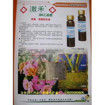 中威激禾30%乙蒜素杀菌剂-真菌、细菌的克星 详细说明: 针对传统杀菌剂病害抗药性强,防效不理想的状况,河南中威高科技化工有限公司联合河南春雨农业化工研究所精心研制出一种浓缩高效、广谱型杀菌剂中威乙蒜素。该药药力强劲、药效迅速,对真菌、细菌引起的多种作物病害具有很好的预防和治疗作用,对各类蔬菜的苗期病害和枯黄萎病有特效。 防治对象和施用方法: 1、 浸种:10ml兑水10公斤浸种催芽。 2、 喷雾:苗床施用,10ml兑水15-30公斤均匀喷施苗床,其它时期兑水15公斤,均匀喷雾,共2-3次,间隔期为7天。 3、防治灰霉病应重点对果蒂和果脐喷雾,效果更好。 4、除上述主要作物外,对其它所有作物的真菌、细菌性病害都有很好的效果。 注 意 事 项: 1.本品低毒,对皮肤和眼睛有一定刺激,使用时应防止沾染。若不慎中毒,及时就医,早期应灌服硫代硫酸钠和活性炭。 2.可与一般酸性农药混用。 3.阴凉干燥通风处贮存,严禁与食品、日用品混放。