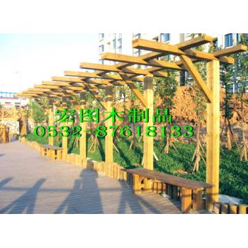 花架又称棚架、绿廊,是用刚性材料构成一定形状的各家工攀缘植物攀附的一种园林设施。花架可作遮荫休息之用,并可点缀园景。花架设计要了解所配置植物的原产地和生长习性,以创造适宜于植物生长的条件和造型的要求。现在的花架,有两方面作用。一方面供人歇足休息、欣赏风景;一方面创造攀援植物生长的条件。因此可以说花架是最接近于自然的园林小品了。防腐木花架的应用 防腐木花架可应用于各种类型的园林绿地中,常设置在风景优美的地方供休息和点景,也可以和亭、廊、水榭等结合,组成外形美观的园林建筑群;在居住区绿地、儿童游戏场中花架可供休息、遮荫、纳凉;用花架代替廊子,可以联系空间;用格子垣攀缘藤本植物,可分隔景物;园林中的茶室、冷饮部、餐厅等,也可以用花架作凉棚,设置坐席;也可用花架作园林的大门。