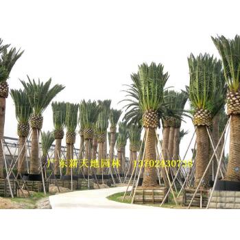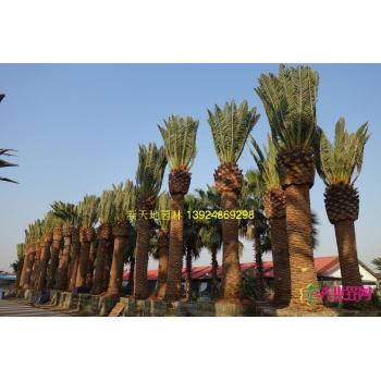 外文名称: Phoenix canariensis 加拿利海枣是国际著名的景观树,生长在非洲西岸的加拿利岛。1909年引种到台湾,20世纪80年代引入中国大陆。其单干粗壮,直立雄伟,树形优美舒展,富有热带风情,广泛应用于公园造景、行道绿化。 形态特征 加拿利海枣 常绿乔木,高可达10~15米,粗65~100厘米。干单生,其上覆以不规则的老叶柄基部。叶大型,长可达4~6米,呈弓状弯曲,集生于茎端。羽状复叶,成树叶片的小叶有150~200对,形窄而刚直,端尖,上部小叶不等距对生,中部小叶等距对生,下部小叶每2~3片簇生,基部小叶成针刺状。叶柄短,基部肥厚,黄褐色。叶柄基部的叶鞘残存在干茎上,形成稀疏的纤维状棕片。5~7月开花,肉穗花序从叶间抽出,多分枝。果期8~9月,果实卵状球形,先端微突,成熟时橙黄色,有光泽。种子椭圆形,中央具深沟,灰褐色。 [编辑本段]生长习性 加拿利海枣原产非洲西岸的加拿利岛,中国热带至亚热带地区可露地栽培,在长江流域冬季需稍加遮盖,黄淮地区则需室内保温越冬。其植株耐热、耐寒性均较强,成龄树能耐受-10℃低温。 [编辑本段]栽培技术 移植管理 移植时,土坑要大于先有的土球,一般为高1.5M,宽2.5-3.0M(最理想)。底部放一层碎砖,上面再铺一层细砂后再种植。种植时底部要撒‘呋喃丹’或石粉。以防地虫。其它部位以含腐植之壤土或砂质土壤种植,即保湿排水好。一般树定植后,土球要高出土表5-10CM,使之与土表成45度角倾斜。以细砂覆盖,上部最好种上细小的植物,有保护水土流失作用。 喷药 1、颗粒药剂;将兴农丹用医用纱布包住,每包50-100g左右均可,放置于心叶部位,每株放3-4包;定植时沿树体四周均匀撒一圈,1月/次;(注:兴农丹与会3%国呋喃丹成分功效一样,二者既可混用亦可单独使用) 2、乳化防治:好作伙(陶斯松)200ml+释胜格(贝他一赛宁)200ml+打手100g+多功能农用界面活性剂 兑水300L 3、杀虫王200ml+乐果150ml+1605 150ml+展着剂100ml 兑水300L 注:乳剂防治应采用几种药剂交替使用,避免树体产生抗药性。
