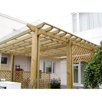 花架又称棚架、绿廊,是用刚性材料构成一定形状的各家工攀缘植物攀附的一种园林设施。花架可作遮荫休息之用,并可点缀园景。花架设计要了解所配置植物的原产地和生长习性,以创造适宜于植物生长的条件和造型的要求。现在的花架,有两方面作用。一方面供人歇足休息、欣赏风景;一方面创造攀援植物生长的条件。因此可以说花架是最接近于自然的园林小品了。 防腐木花架的应用 防腐木花架可应用于各种类型的园林绿地中,常设置在风景优美的地方供休息和点景,也可以和亭、廊、水榭等结合,组成外形美观的园林建筑群;在居住区绿地、儿童游戏场中花架可供休息、遮荫、纳凉;用花架代替廊子,可以联系空间;用格子垣攀缘藤本植物,可分隔景物;园林中的茶室、冷饮部、餐厅等,也可以用花架作凉棚,设置坐席;也可用花架作园林的大门。 防腐木花架的优点 普通木材虽然价格低,但耐久性差。因为花架通常都是在室外的,防腐木有很好的防腐、防虫、防水等特点,不仅外观朴实自然,而且也弥补了普通木材耐久性差的缺点,所以可以说是制作花架最好的建筑材料了