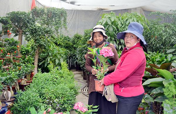 拉萨市民在太阳岛花鸟市场挑选自己喜欢的花卉