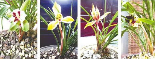在南京清凉山公园举办的第十届南京海峡两岸春季兰花邀请展上,除了“大富贵”、“宋梅”等传统品种外,首次公开亮相的新品兰花特别引起参观者的兴趣。这是其中的四种获奖新品兰花(从左至右为获金奖的四喜蝶、获银奖的文俊蝶、获金奖的新种荷花、获特别奖的大荧蝶)。