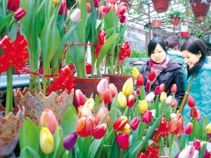 2月29日,苏州市民在皮市街花卉市场选购花卉。时下进入春暖花开季节,苏州各大花卉市场上鲜花竞相开放,许多市民纷纷购买鲜花扮靓居室,美化环境。