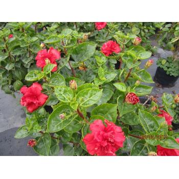 大红花即朱槿,是一种属于锦葵科木槿属的常绿灌木,又称赤槿、日及、扶桑、佛桑、红扶桑、红木槿、桑槿、火红花、照殿红、赤槿、宋槿、照殿红、二红花、花上花、土红花、假牡丹,因原产于中国南部,故又名中国蔷薇(英文:Rose of China、China rose)。由于花色大多为红色,中国岭南一带将之俗称为大红花,而大红花也是马来西亚华人对马来西亚国花,即其中一种红色朱槿的称呼。朱槿在古代就是一种受欢迎的观赏性植物,原产地中国在西晋时期的一本著作《南方草木状》中就已出现朱槿的记载。现在全世界,尤其是热带及亚热带地区多有种植。大红花属于锦葵科木槿属,是一种常绿灌木,可高达6米,栽种于花园庭院中的一般被人修剪至1米多高左右。大红花茎直而多分枝,叶禄色,互生,叶形为阔卵形至狭卵形,与桑叶相似,叶缘有粗锯齿或缺刻。花体积大,花柄有下垂或直上二种,花单生于上部叶腋间,花的特色为有一长花丝筒于花中心长出,花色有红、白、黄、粉红、橙等色,花期全年,夏秋最盛。实用价值观赏 朱槿最早成长于野外,因为它鲜艳的花色与榇托的绿叶,深深吸引观察者,开始被人类引进种植在庭院及墙角下,乃着眼于它的观赏价值。围篱 人类栽种朱槿发现它生长非常茂盛,可以密植作为绿篱(Hedge Hibiscus),是很理想的围篱植物,乃衍生朱槿的另一功能"围篱(hedge)",这是朱槿做为观赏外的另一个功能,宋朝诗人陆壑的《朱槿花》:“壁槿扶疏当缚篱,山深不用掩山扉。客来踏破松梢月,鹤向主人头上飞。”,这首七言绝句最能说明朱槿在八百年前已普遍作为篱笆的功能。食用 朱槿的叶有营养价值,在欧美,其嫩叶有时候被当成菠菜的代替品。而朱槿花也有被制成腌菜,以及用于染色蜜饯和其他食物。根部也可食用,但因为纤维多且带粘液,较少人食用。