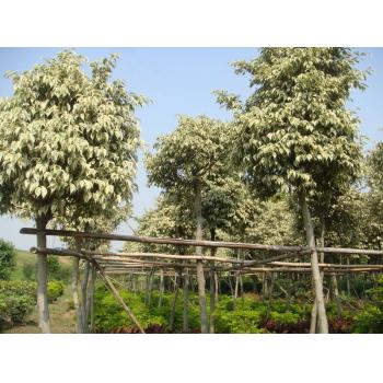 星光榕 植物名称:星光榕 拉 丁 名:Ficus benjamina ‘Starlight’ 科 名:桑科 属 名:榕属 形态特征: 叶面洒布黄色至黄白色斑点。 生长习性: 性喜温暖,耐荫性强。 景观用途: 幼株及栽培种株型较矮,可以盆栽欣赏,或在草坪及花坛孤植,可修剪成圆球形,并可做绿篱。
