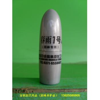 春雨一号 价格:***元 规格:4g*9粒*15盒 商品简介:春雨一号子弹头能迅速渗透到植物体内,促进细胞原生质流动,加快植物发根速度,对植物发根、生长、生殖及结果等发育阶段均有不同程度的促进作用。 春雨一号子弹头主要用于叶面喷洒和灌溉冲施,同时也可以进行浸根、苗床灌注、根灌等处理。春雨一号子弹头不同于植物激素,在草坪、花卉、苗木播种开始至销售之间的任何时期,皆可使用。 -------------------------------------------------------------------------------- 详细描述 [作用特点] 春雨一号子弹头能迅速渗透到植物体内,促进细胞原生质流动,加快植物发根速度,对植物发根、生长、生殖及结果等发育阶段均有不同程度的促进作用, ◆可使草坪返青快,泛绿快,颜色正,观赏价值高,分蘖多、成坪快,并减少病虫害的发生。 ◆ 改善植物长势,促进生长发育,促使苗木枝条伸长,茎杆增粗,苗木提早出圃,花卉开花早、花色艳丽、花期延长。 ◆ 增强花木抗病虫、抗旱涝、抗逆能力,缓解冻害,具有解毒愈创作用,缩短受害植物的康复时间,有效减轻病菌危害。 ◆ 增强光合作用,使叶色浓绿光亮,叶片肥厚,观赏价值提高,经济效益显著增加。 ◆ 促根壮苗,提高育苗、移栽成活率,促进插枝快生根。 ◆ 增强植物细胞活力,促进新陈代谢,打破休眠,促进萌发。 ◆ 可与一般农药、肥料混用,互补增效。 春雨一号子弹头主要用于叶面喷洒和灌溉冲施,同时也可以进行浸根、苗床灌注、根灌等处理。春雨一号子弹头不同于植物激素,在草坪、花卉、苗木播种开始至销售之间的任何时期,皆可使用。 [用法用量] 草坪、花卉、苗木、果树叶面喷施每粒春雨一号子弹头兑水300㎏-600㎏均匀喷雾。7—10天喷洒一次,连续使用数次,效果更加显著;地面灌溉冲施每亩(667㎡)使用3—4粒春雨一号子弹头。 提示:用不完的春雨一号子弹头稀释母液封闭后可以长期存放,不失效。 [注意事项] ◆春雨一号子弹头使用浓度过高时,会对植物幼芽及生长有抑制作用。 ◆ 按规定浓度使用,喷雾应均匀。喷洒后6小时内遇雨应补喷。 ◆地面冲施,为使冲施均匀,请先稀释后,顺水头冲施。 ◆ 本品可与任何类型杀虫、杀菌剂以及除草剂混合使用,并起增效作用;但与调节剂混合使用时,请先试验后使用,以免造成药害。 ◆ 部分花卉盛花期使用时,请先试验后使用。 ◆ 本品高效、低毒、光谱。