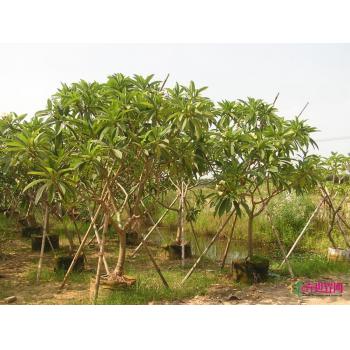 落叶灌木或小乔木。是夹竹桃科鸡蛋花属落叶小乔木或灌木,高约5-8米。枝条粗壮、肉质茎、具丰富乳汁、绿色、无毛。小枝肥厚多肉。叶大,厚纸质,多聚生于枝顶,叶脉在近叶缘处连成一边脉。花数朵聚生于枝顶,花冠筒状,径约5-6厘米,5裂,外面乳白色,中心鲜
