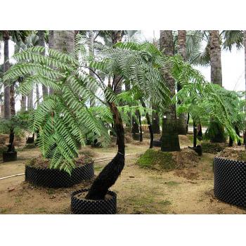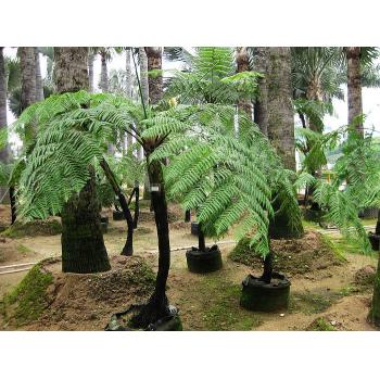 桫椤,别名:笔筒树 桫椤树属蕨类植物门桫椤科,属蕨类孢子植物,又称黑桫椤、树蕨、刺桫椤、龙骨凤、笔简树等。为白垩纪时期遗留下来的珍贵树种。是现今仅存的木本蕨类植物。据资料显示,桫椤的出现距今约三亿多年,比恐龙的出现还早一亿五千多万年,是研究植物形成、植物地理学及地球历史变迁的好材料,具有重要的保护价值和科学研究价值,故有“活化石”之称的桫椤,被列为国家一类保护植物。 树形如蕨类,主干高3—8米,叶顶生羽状,长羽轴和主脉下面有略呈状鳞片,胞子囊生于小脉分叉占凸起的囊托上,囊群盖近圆球形,成熟时开裂囊群下,喜潮湿温凉,云雾绕绕的环境,生长于林下,溪沟两旁,一般海拔在500—800米之间适合生长。 繁殖:桫椤树是无性繁殖,那些小圆点就是桫椤树的本种孢子体,它生长缓慢,生殖周期长,孢子萌发和配子体发育以及配子的交配都需要温和而湿润的环境。 实用价值 (一)研究价值:由于桫椤科植物的古老性和孑遗性,它对研究物种的形成和植物地理区系具有重要价值,它与恐龙化石并存,在重视恐龙生活时期的古生态环境,研究恐龙兴衰,地质变迁具有重要参考价值。 (二)观赏价值:桫椤树形美观,树冠犹如巨伞,虽历经沧桑却万劫余生,依然茎苍叶秀,高大挺拨,园艺观赏价值极高。 (三)药用价值:桫椤树干外皮坚硬,花纹美观,削去外皮的髓部可作药用,具有味辛、微苦性平、能祛风湿、强筋骨、清热止咳。常用来治疗跌打损伤、风湿痹痛、肺热咳嗽、预防流行性感冒、流脑以及肾炎、水肿、肾虚、腰痛、妇女崩漏、中心积腹痛、蛔虫、蛲虫和牛瘟等。内茎液汗,外用可治癣症。其茎杆髓部含淀粉大约在25—30%左右,可提取淀粉代食品,其根茎具有清热解署等功效。