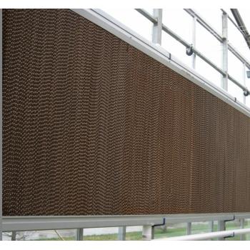 1.温室大棚开窗系统我公司提供各类温室大棚开窗系统包括:顶开窗:位于屋脊处,可单向或双向开启,齿轮齿条传动,运行平稳,使用寿命长,密封保温性好,是连栋温室大棚中最重要、最常用的通风方式。外翻式侧开窗:位于温室侧部,齿轮齿条传动,运行平稳,使用寿命长,密封保温性好。卷帘式侧窗:结构简单,通风面积大,可电动或手动操作,用于膜覆盖的温室,日光温室常用。齿轮齿条开窗机构:齿轮齿条开窗机构是目前最常用的一种开窗机构,其核心部件为齿轮齿条,附属配件随着机构整体的不同而有差异。齿轮齿条机构性能稳定、运行可靠安全、承载力强、传动效率高、运转精确、便于实现精确自动控制,因此是大型连栋温室开窗机构的首选型式。根据传动原理和齿轮齿条布置的差异,可将齿轮齿条开窗机构分为排齿开窗机构和推杆开窗机构。 2.温室大棚遮阳系统 遮阳系统是温室降温的重要设施,分为内、外遮阳系统两种,两种都是由由驱动系统和遮阳网组成,驱动系统可分为齿轮齿条驱动系统和钢索驱动系统。内遮阳系统除了可以进行夏季降温外,还可以在冬季起到节能保温的作用。 3.温室大棚湿帘/风扇降温:湿帘/风扇降温系统利用水的蒸发降温原理实现降温目的。降温系统的核心是能确保水均匀的淋湿整个湿帘墙。空气穿过湿帘介质时,与湿帘介质表面进行的水气交换将空气的温度降低。该系统是目前一种最经济有效的降温方法。 4.温室大棚微雾降温:微雾系统由高压泵,喷雾嘴,控制部分及管路组成。 工作原理:将水以微米级的雾粒形式喷向整个温室内部,使其迅速蒸发,利用水的蒸发潜热的特点,大量吸收室内空气中的热量,从而达到降温的目的。 5.温室大棚温室增温设备:高频焊螺旋翅片管:该产品是一种新型、耐磨、高效的换热产品,近几年在温室中应用颇为广泛。圆翼型热镀锌散热器散热面积大、温度提升较高、降温慢、散热均匀,不会对农作物生长造成影响,且防腐防锈、质量 好、寿命长。热镀锌光管散热器热阻小,热效率高,安装方便,耐压高,不易滴漏,防腐能力强。热风炉:能在最寒冷的冬天,使玻璃温室和塑料大棚温室温暖如春,给作物提供一个合适的生长环境。作为一种温室内加温和应急加温设备,其性能和经济效益尤为突出。 6.温室大棚喷灌系统及苗床:温室微喷:适用于育苗温室和一些绿植栽培。灌溉水在压力作用下使喷头喷嘴高速旋转形成均匀水滴。雾化喷灌:对于温室不仅起灌溉作用,还可以起到降温,调节湿度,叶面施肥等作用,在温室内已经广泛应用。行走喷灌机:专为温室设计,灌溉均匀度高,可控制灌水位置,时间;重复次数;设置3种不同流量和雾化程度的喷嘴,通过平移轨道进行衡向移动,使一台喷灌机灌溉多跨温室。滴灌系统:水滴直接作用于植物根部,只湿润部分土层和表土,大大减少水分蒸发,节约灌溉用水;可进行自动控制和手动控制。可与施肥器配合使用。 7.保温被及卷被电机 该产品主要以化纤无纺布等合成材料制成,广泛应用于大樱桃、桃子等反季水果大棚;花卉、蔬菜、食用菌大棚;海产品育苗大棚;禽、畜饲养大棚及各种温室大棚等。该产品具有如下特点: a、保温性能好:该产品由防雨层、多层保温层、空气隔阻层、耐磨保温层组成,具有优异的隔阻冷热空气的保温作用,比目前草帘或其它覆盖材料可提高棚内温度5~7℃以上,可使反季作物提前上市。 b、寿命长、易保管:该产品全部采用化纤原材料制做,具有耐磨、抗拉、抗老化、不变质、重量轻的特点,使用年限可达8年以上。并且该产品易于保存、抗腐蚀,不必特殊存放。省工、增效。 c、不透雨雪、防尘、阻燃:该产品在加工制做过程中采用特殊工艺使被面单侧无缝制痕迹,与其它大棚保温材料相比不透雨雪,保温性能更佳;由于采用化纤原料的高密度无纺布制做,本身的静电作用可清除大棚表面的污物,增加大棚的透光度,且不易燃烧、变形,可起到阻燃的作用。 d、幅面宽、重量轻:该产品比目前市场上的大棚覆盖材料重量轻,每平方米约为1200克左右,且幅面宽为2.1米,比目前市场上使用的覆盖材料都宽,可降低使用成本。并且采用特殊方法可将保温被连为整体,增强抗风性能,易于管理,保温性能优异。 e、使用成本低:由于该产品使用年限在8年以上,其综合成本要远远低于目前市场上使用的大棚保温材料。