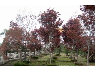 形态特征:掌状5-7深裂,卵状披针形,此品种在春、夏、秋三季叶片均为红色,尤其春秋;季节叶色为鲜红色,仲夏叶片变为棕红色。被誉为\\\\\\\"四季火焰枫\\\\\\\"。冬季叶片落尽后,它奇特极富观赏性的枝干仍然为冬季园林增添一景。