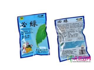 必绿:氮磷钾的配比为30-10-10,加1%铁及微量元素,叶片绿化效果佳、叶片翠绿、叶片光亮,并快速生长。叶片增大、叶片油绿有光泽,增加产量,提高品质,提早上市天数。
