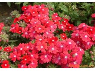 美女樱 【学名】Verbenahybnida【别名】草五色梅、铺地马鞭草、铺地锦、四季绣球、美人樱【原产地和主要分布】原产巴西、秘鲁、乌拉圭等地,现世界各地广泛栽培,中国各地也均有引种栽培。【科属】马鞭草科,马鞭草属【形态特征】 为多年生草本植物,常作1-2年生栽培。茎四棱、横展、匍匐状,低矮粗壮,丛生而铺覆地面,全株具灰色柔毛,长30-50厘米。叶对生有短柄,长圆形、卵圆形或披针状三角形,边缘具缺刻状粗齿或整齐的圆钝锯齿,叶基部常有裂刻,穗状花序顶生,多数小花密集排列呈伞房状。花萼细长筒状,花冠漏斗状,花色多,有白、粉红、深红、紫、蓝等不同颜色,略具芬芳。花期长,4月至霜降前开花陆续不断。蒴果,果熟期9-10月,种子寿命2年。【生态习性】 喜阳光、不耐阴,较耐寒、耐荫差、不耐旱,北方多作一年生草花栽培,在炎热夏季能工常开花。在阳光充足、疏松肥沃的土壤中生长,花开繁茂。喜温暖湿润气候,喜阳,不耐干旱,对土壤要求不严,但以在疏松肥沃、较湿润的中性土壤能节节生根,生长健壮,开花繁茂。在上海小气候较温暖处能露地越冬。【繁殖】 繁殖主要用扦插、压条,亦可分株或播种。播种可在春季或秋季进行,常以春播为主。早春在温室内播种,2片真叶后移栽,4月下旬定植。秋播需进入低温温室越冬,来年4月可在露地定植,从而提早开花。4月末播种,7月即可盛花。播种后反复浇水会降低发芽率,所以应在播种前把土壤浇透,播后保持土壤及空气湿度。可将植株移入温室越冬,翌年作为繁殖插穗的母株。扦插可于4-7月,在气温15-20℃的条件下进行,剪取稍硬化的新梢,切成6厘米左右的插条,插于温室沙床或露地苗床。扦插后即遮荫,2-3天以后可稍受日光,促使生长。经15天左右发出新根,当幼苗长出5-6枚叶片时可移植,长到7-8厘米高时可定植。植株成活后适时摘心,促使枝叶繁茂,多开花。上海地区常于秋季9月在冷床或低温温室内培养小苗,次年春季用其新枝扦插,植于露地花坛;也可用匍枝进行压条,待生根后将节与节连接处切开,分栽成苗。播种繁殖通常在9月生产上较少使用。暖地地下部可露地越冬,早春进行分株繁殖。【栽培】 用于花坛者宜早定植,花后及时剪除残花,可延长花期。适时施肥、浇水、及时中耕除草,雨季及时排涝。栽培美女樱应选择疏松、肥沃及排水良好的土壤。因其根系较浅,夏季应注意浇水,以防干旱。每半月需施薄肥1次,使发育良好。养护期间水分不可过多过少,如水分过多,茎枝细弱徒长,开花甚少;若缺少肥水,植株生长发育不良,有提早结籽现象。生长健壮的植株,抗病虫能力较强,很少有病虫害发生。 地定植的苗株不要过大,以免横生侧枝脱叶,株距一般40cm左右。早摘心促二次枝。花后剪掉花头,夏季常浇水,同时追施1-2次液肥。江南越冬花株只留地下部在土内越冬,来年用新枝扦插或分株繁殖。采种采取一次收割株丛晒干脱粒。【应用】 美人樱株丛矮密,花繁色艳,花期长可用作花坛、花境材料。也可作盆花成大面积栽植于园林隙地、树坛中。同属常见栽培种有加拿大美人樱、红叶美人樱、细叶美人樱等。全草可入药,具清热凉血的功效。