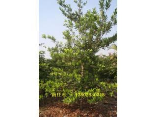 常绿小乔木。树冠整齐成层,枝条无毛。叶聚生枝顶端,狭披针形或倒披针形,长7~15cm,宽1.4~2.8cm,叶柄长1~2厘米。边缘密生浅小牙齿;总状花序腋生,比叶短;苞片大,宿存,宽卵形;花期6-7月,花大,倒垂,白色,芳香;萼片披针形;花瓣倒卵形,顶端细裂如丝;雄蕊多数,顶孔开裂,顶端有芒状突起;子房无毛。核果纺锤形,无毛,两端渐尖似橄榄,光滑。