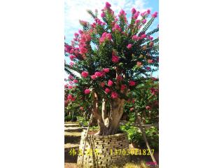 红花紫薇  红花紫薇基本资料  拉丁文学名: Lagerstroemia indica   别名: 百日红、满堂红、痒痒树   科属名: 千屈菜科、紫薇属  生态习性:  喜光,稍耐阴;喜温暖气候,耐寒性不强;喜肥沃、湿润而排水良好的石灰性土壤,耐旱,怕涝。萌菜性强,生长较慢,寿命长。   形态特征:  属落叶灌木或小乔木.红花紫薇为小乔木,更多红花紫薇搜索紫薇基地,有时呈灌木状,高3~7米;树皮易脱落,树干光滑。幼枝略呈四棱形,稍成翅状。叶互生或对生,近无柄;椭圆形、倒卵形或长椭圆形,长3~7厘米,宽2.5~4厘米,先端尖或钝,基部阔楔形或圆形,光滑无毛或沿主脉上有毛。圆锥花序顶生,长4~20厘米;花径2.5~3厘米;花萼6浅裂,裂片卵形,外面平滑;花瓣6,红色或粉红色,边缘有不规则缺刻,基部有长爪;雄蕊36~42,外侧6枚花丝较长;子房6室。蒴果椭圆状球形,长9~13毫米,宽8~11毫米,6瓣裂。种子有翅。花期5~8月,果期7~9月。 树干愈老愈光华,用手抚摸,全株微微颤动,故又称为痒痒树。繁殖管理  繁殖方法 繁殖主要用播种、扦插法,也可用分生、压条法和嫁接法。  1.播种繁殖 可一次得到大量健壮而整齐的苗木。11月至12月收集成熟的种子,去掉果皮,将种子稍晾干,放入容器干藏。翌年3月在砂壤土地苗床上行阔条幅播或撒播,盖一层细焦泥灰,以不见种子为度,上覆草。10余天发芽出土,及时揭草,待幼苗出现2对真叶时可择雨后间苗;苗期勤除草,6—7月追施薄肥2—3次,入夏灌溉防旱,年终苗高约40—50厘米,生长健壮的当年可开花,宜及时剪除,翌年春分移栽长大。   2.扦插繁殖 可硬枝扦插和嫩枝扦插。  硬枝扦插一般在3月中下旬至4月初枝条发芽前进行。选取粗壮的一年生枝条,剪成l 5cm长的插穗,插入疏松、排水良好的沙壤土苗床,扦插深度以露出插穗最上部一个芽即可。插后灌透水,覆以塑料薄膜以保湿保温。苗株长成15—20厘米就可以将薄膜掀开,改成遮阴网,适时浇水,当年枝条就可长到60—80厘米左右。  嫩枝扦插在7~8月进行,此时新枝生长旺盛,最具活力。选择半木质化的枝条,剪成8~lOcm长的插穗,上端留2-3片叶子。扦插深度为3~4cm。插后灌透水,并搭荫棚遮荫,一般20天左右即可生根,将薄膜去掉,保留遮阴网,再适时浇水,当年枝条可长到60—80厘米左右,成活率很好。  3.分生繁殖 在3~4月初或秋天将植株根际萌发的分蘖苗带根掘出,适当修剪根系和枝条,另行栽植。小苗可以裸根,大苗应带泥球,抚育中要经常修剪、整形,保持优美树形,促进花枝繁茂。   4.压条繁殖 生长季节都可进行,以春季3月至4月较好。空中压条法可选1年至2年生枝条,用利刀刻伤并环剥树皮1.5厘米左右,露出木质部,将生根粉液(按说明稀释)涂在刻伤部位上方3厘米左右,待干后用筒状塑料袋套在刻伤处,装满疏松园土,浇水后两头扎紧即可,一个月后检查,如土过干可补水保湿,生根后剪下另植。   5.嫁接法 紫薇有几个变种,如银薇,花为白色;翠薇,花蓝紫色、淡紫色;红微,花桃红色,深红色等;笔者在同一株树上嫁接几种不同花色的一年生或二年生枝条,成活率均达98%以上。具体方法是:2月下旬至3月上旬,在紫薇枝条萌芽前进行。嫁接时选择发育粗壮的实生苗做砧木,取所需花色的枝条做接穗,采取劈接法。先在砧木顶端靠外围部分纵劈一刀约5—8厘米深,再取长5—8厘米带2个芽以上的接穗削成楔形后插入砧木劈口对准形成层。然后用塑膜将整个穗条枝全部包扎好,露出芽头。用此方法在同一砧木上分层嫁接不同颜色的枝条,形成一树多色。嫁接2—3个月后,就可松膜,此时穗头长可达50—80厘米,应及时将枝头剪短,以免遭风折断,并且可培养成粗壮枝,用此方法培育的植株成活率很好。