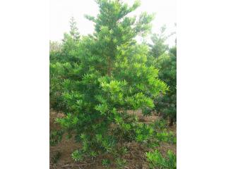 兰屿罗汉松,学名:Podocarpus costalis Presl 开花期:3~5月 结果期:6~8月 形态:常绿小乔木。叶互生﹐线状倒披针形﹐先端圆钝﹐叶缘反卷。花腋生;雄花毬单生﹐圆柱形无柄﹐雌花毬单一。核果状种子﹐椭圆形﹐熟深蓝色;种托肉质﹐熟红色;种托托承种子的外形如披迦纳的罗汉﹐而有罗汉松之名。 质感:细。 分布:原产台湾兰屿﹐但人工繁殖栽培甚多。 适性:性喜高温﹑湿润和阳光充足的环境。其耐盐性佳﹑抗强风﹐但耐旱性差﹑耐寒性及耐阴性均不佳。 生长速率: 慢。年平均地径生长0.3公分以下。 应用:海岸防风林带﹑绿篱﹑庭园美化﹑盆栽;单植﹑列植。 采种期:6-8月。 储藏行为:异储型。 休眠性:无。 罗汉松应用: 罗汉松树形古雅,树姿秀丽葱郁,夏、秋季果实累累,惹人喜爱,南方寺庙、宅院多有种植。地栽适用于小庭院门前对植和墙垣、山石旁配置,中庭孤植,或于墙垣一隅与假山、湖石相配。也可盆栽或制作树桩盆景供室内陈设。斑叶罗汉松可作花台栽植,亦可布置花坛或盆栽陈于室内欣赏。小叶罗汉松还可作为庭院绿篱栽植。