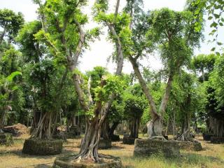 在孟加拉国的热带雨林中,生长着一株大榕树,郁郁葱葱,蔚然成林。 从它树枝上向下生长的垂挂“气根”,多达4千余条,落地入土后成为“支柱根”。这样,柱根相连,柱枝相托,枝叶扩展,形成遮天蔽日、独木成林的奇观 。巨大的树冠投影面积竟达1万平方米之多,曾容纳一支几千人的军队在树下躲蔽骄阳。 在我国广东新会区环城乡的天马河边,也有一株古榕树,树冠覆盖面积约15亩,可让数百人在树下乘凉。 我国台湾、福建、广东和浙江的南部都有榕树生长,田间、路旁大小榕树都成了一座座天然的凉亭,是农民和过路人休息 、乘凉和躲避风雨的好场所。