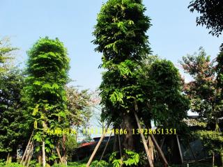 佛教传说的一种异树,高5-10米。羽状复叶,叶柄非常柔软无法支撑叶片,因而嫩叶呈垂状,细看宛如一件被雨打湿了的紫色袈裟。每年3-5月间开花,盛花时,状如火炬般的金色花序覆盖了整个树冠,远眺仿佛一座金色的宝塔。种子秋季成熟。